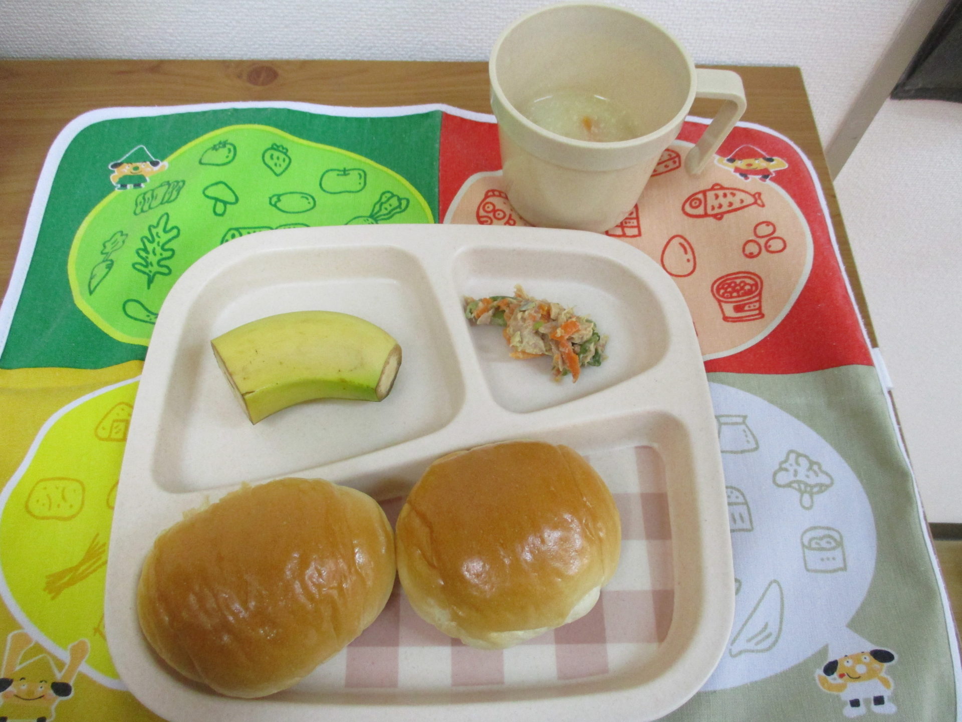 ロールパン、バナナ