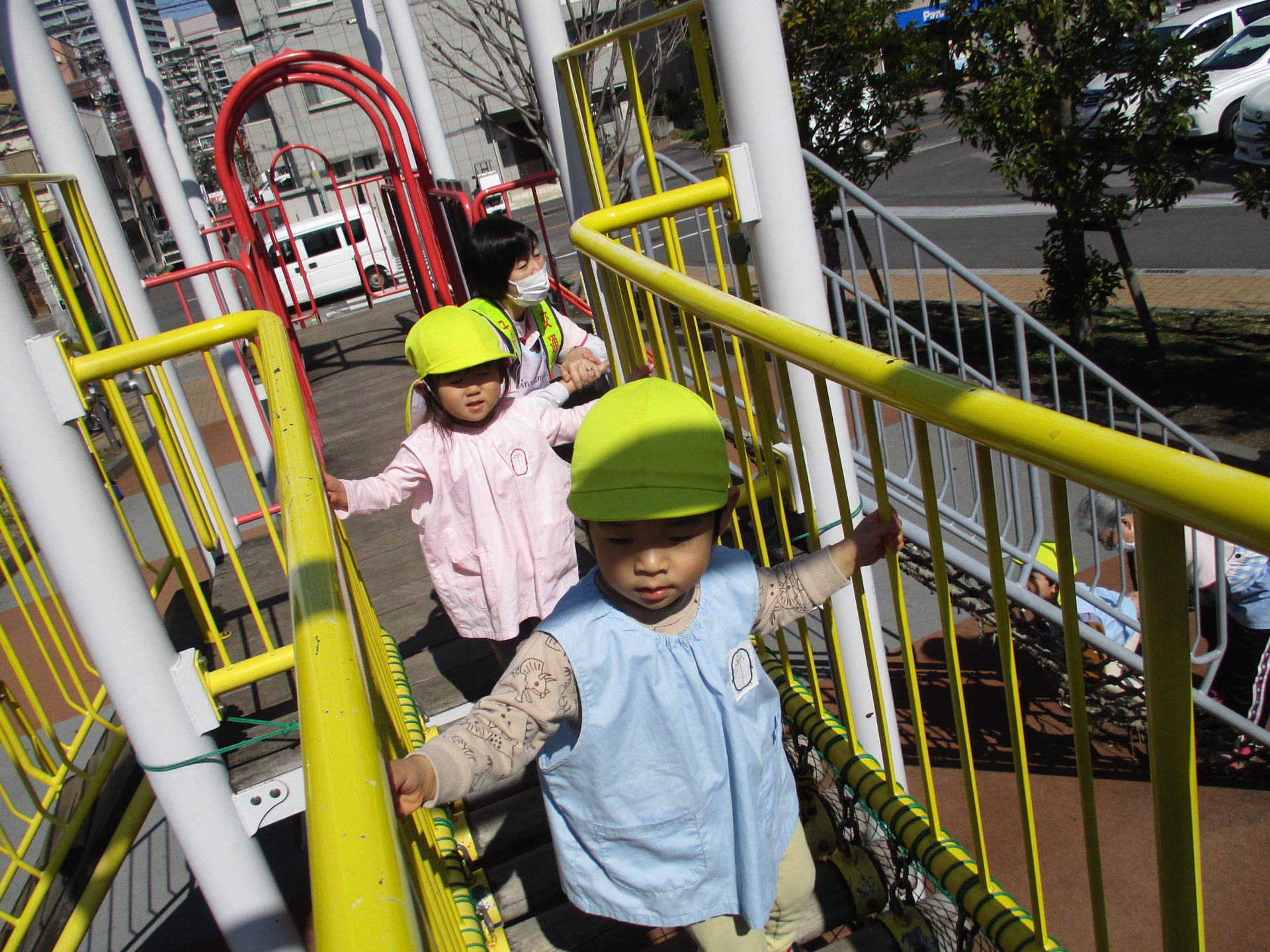 今日は早く出られそうだったので永瀬公園へ行こう!と楽しみに出発したのですが、行ってみると…😢他のお友達が遊んでいたのでサウスゲートの遊具で遊ぶ事にしました。