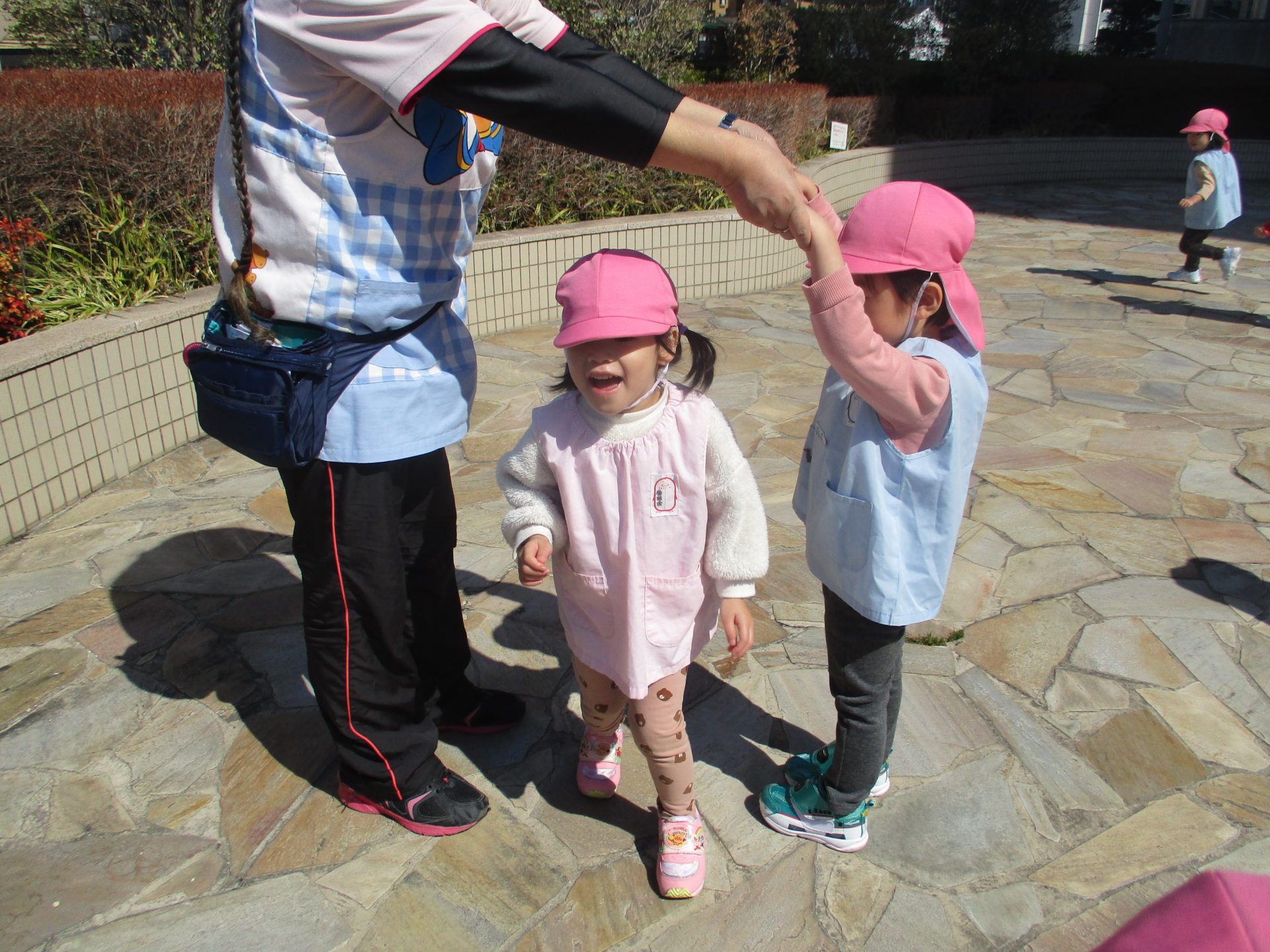 うさぎ組さんとひよこ組さんは園周辺をお散歩です。