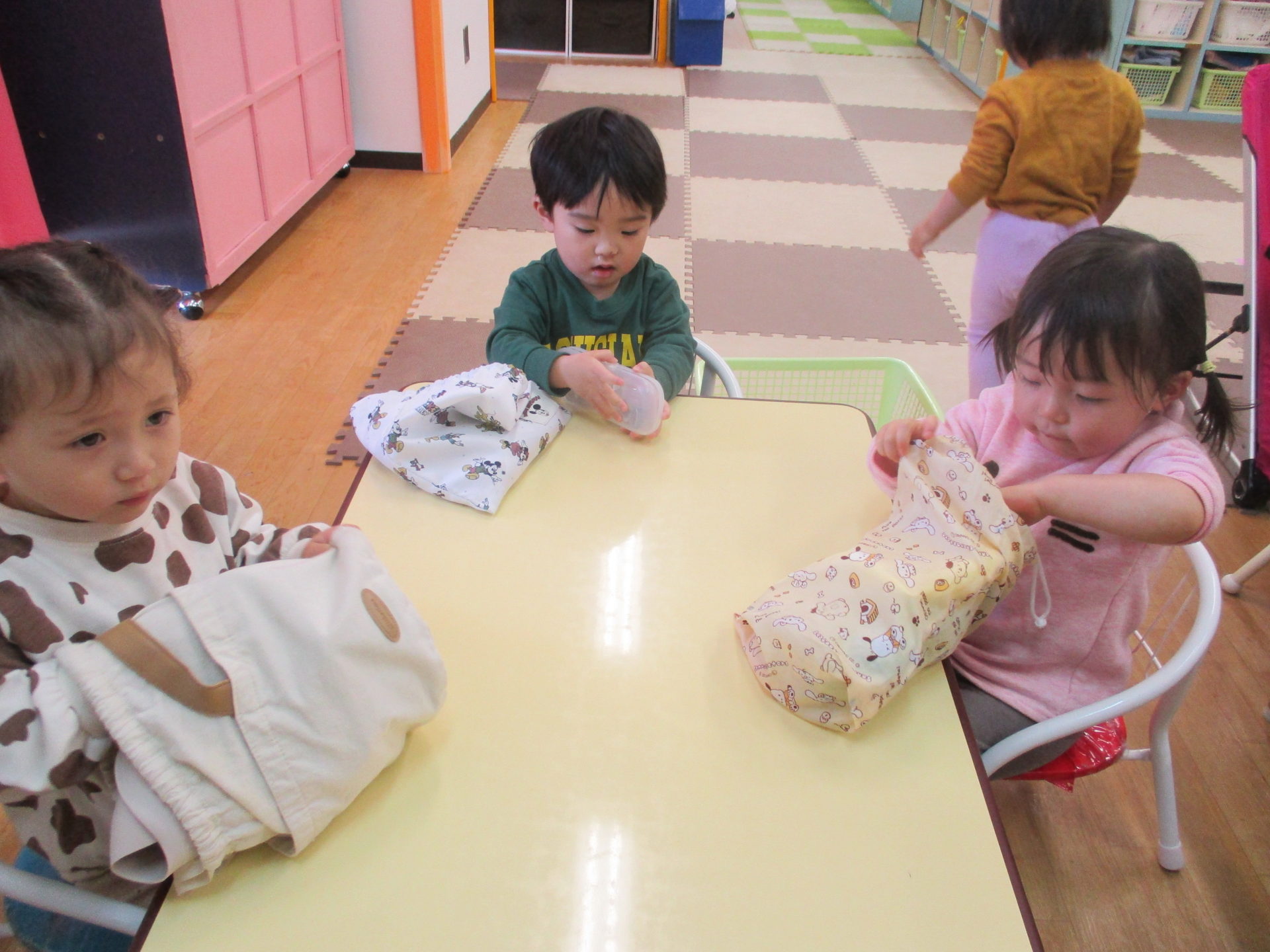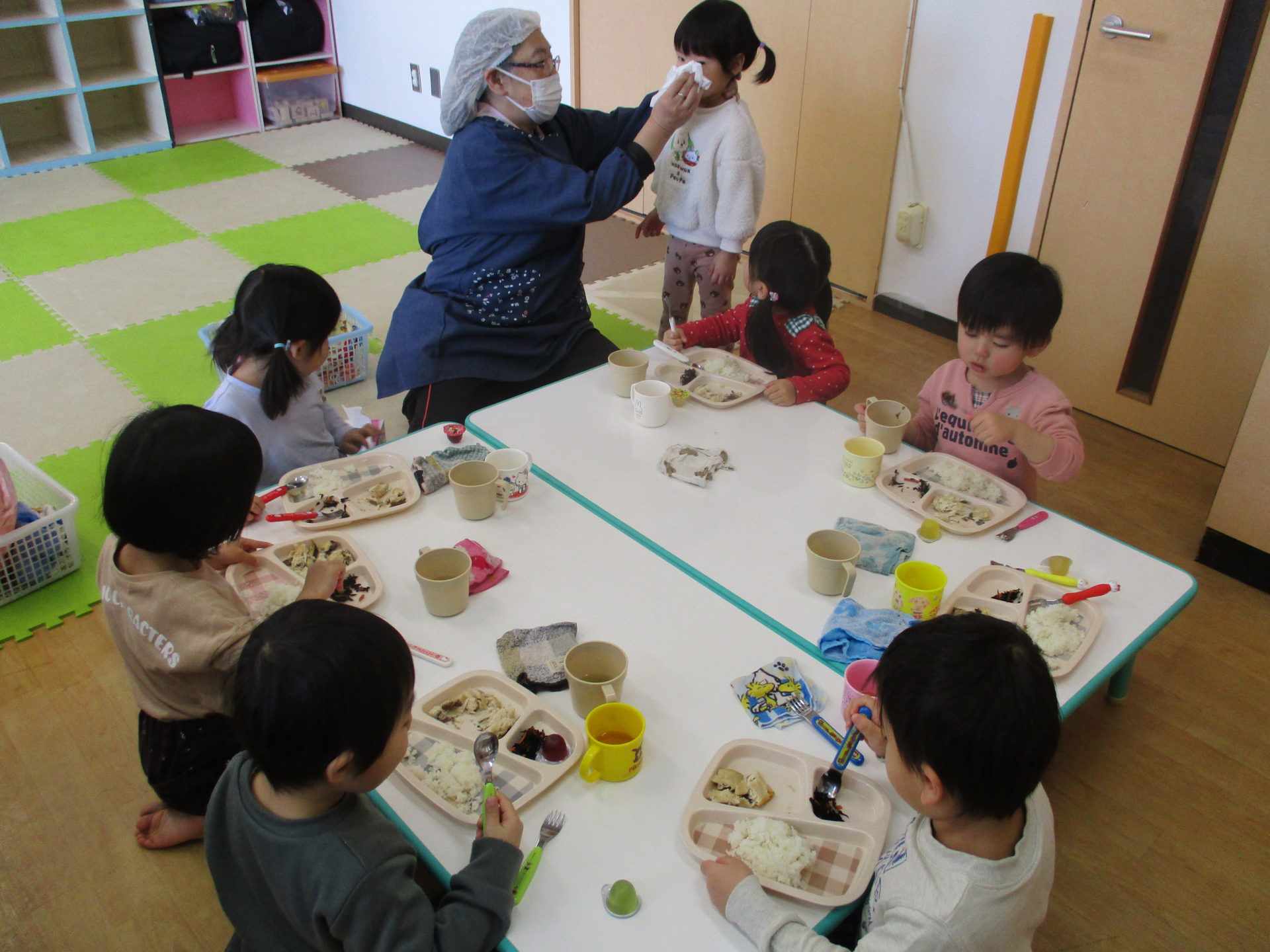お散歩のお写真が無くてすみません。お給食の準備の様子を載せますね。