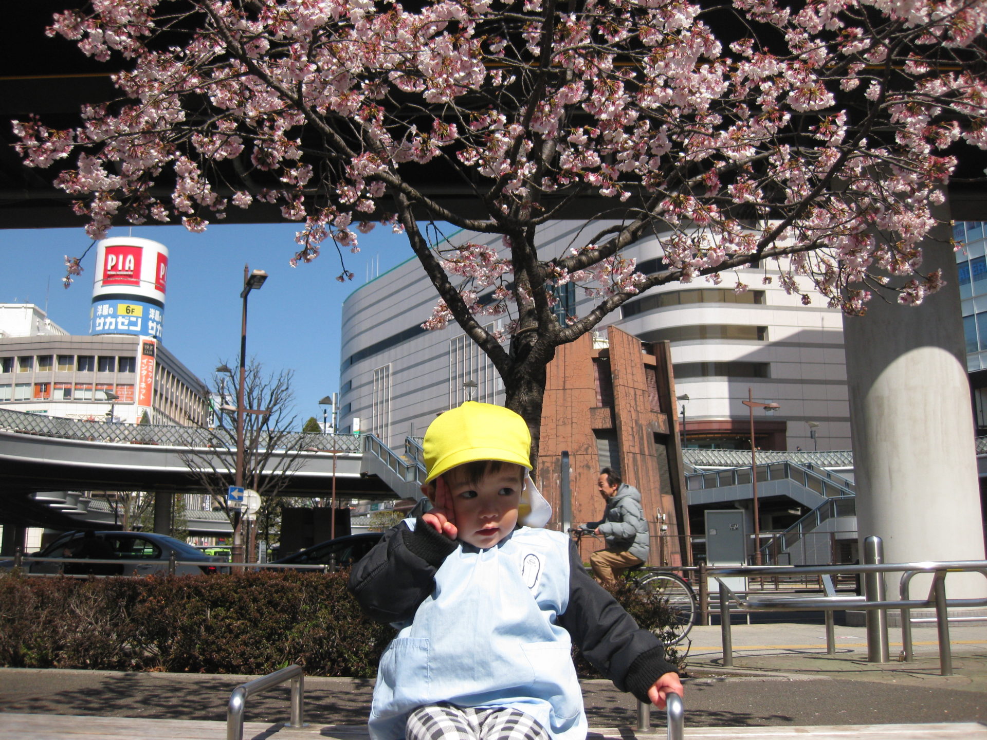 駅に近づくとピンクの可愛いお花を付けた桜の木が見えてきました🌸みんなで一足早いお花見をしましたよ~😆💕