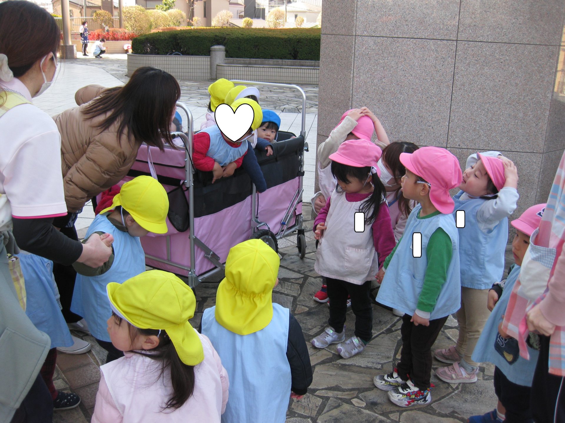 ひよこ・うさぎ組さんは第1保育室のお友達と一緒にキュポラ広場までお散歩に行きました🌟久しぶりの遠出にみんなワクワク嬉しそうでしたよ✨