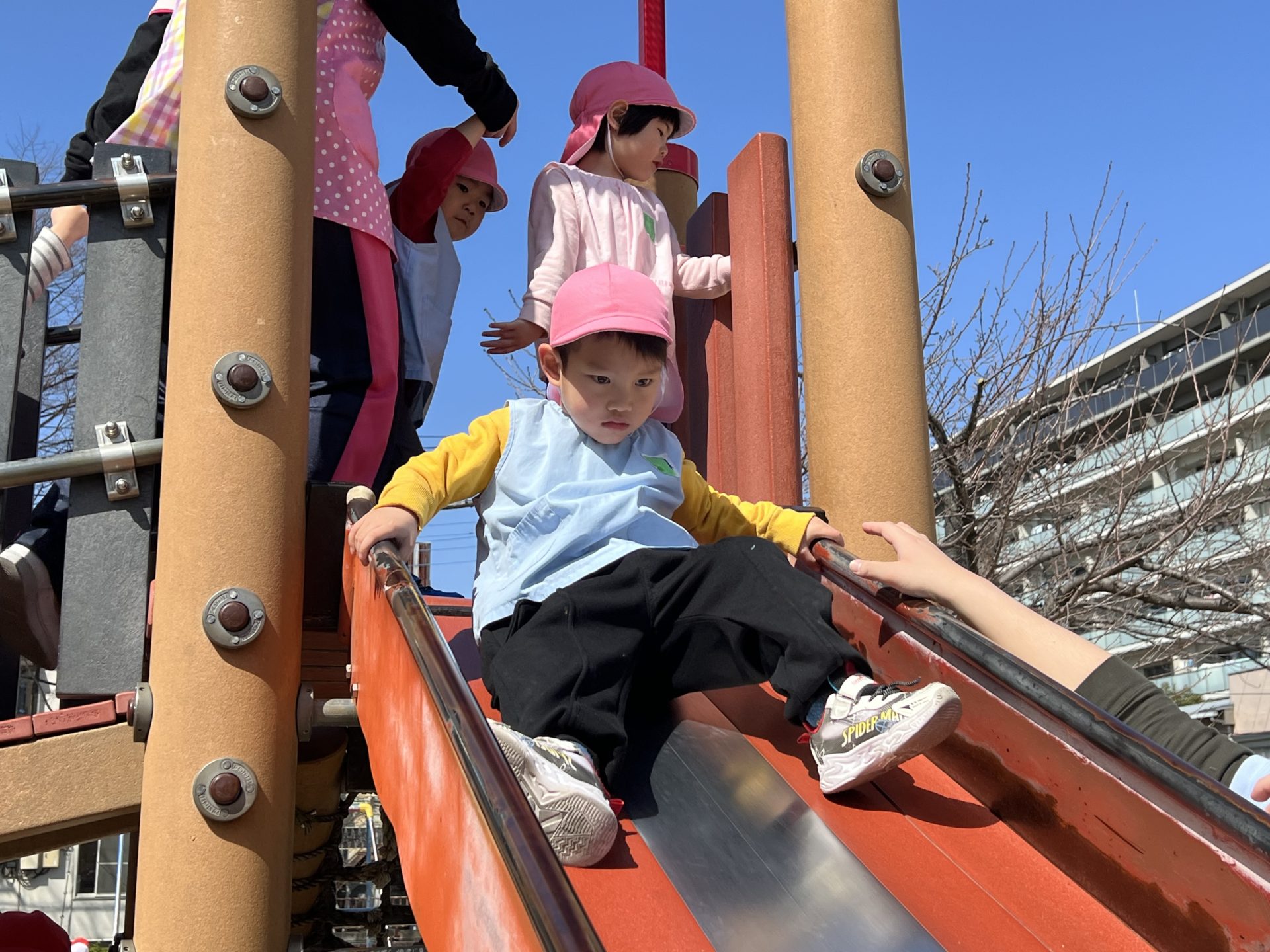 保育者の援助で楽しく滑ることが出来ました😉