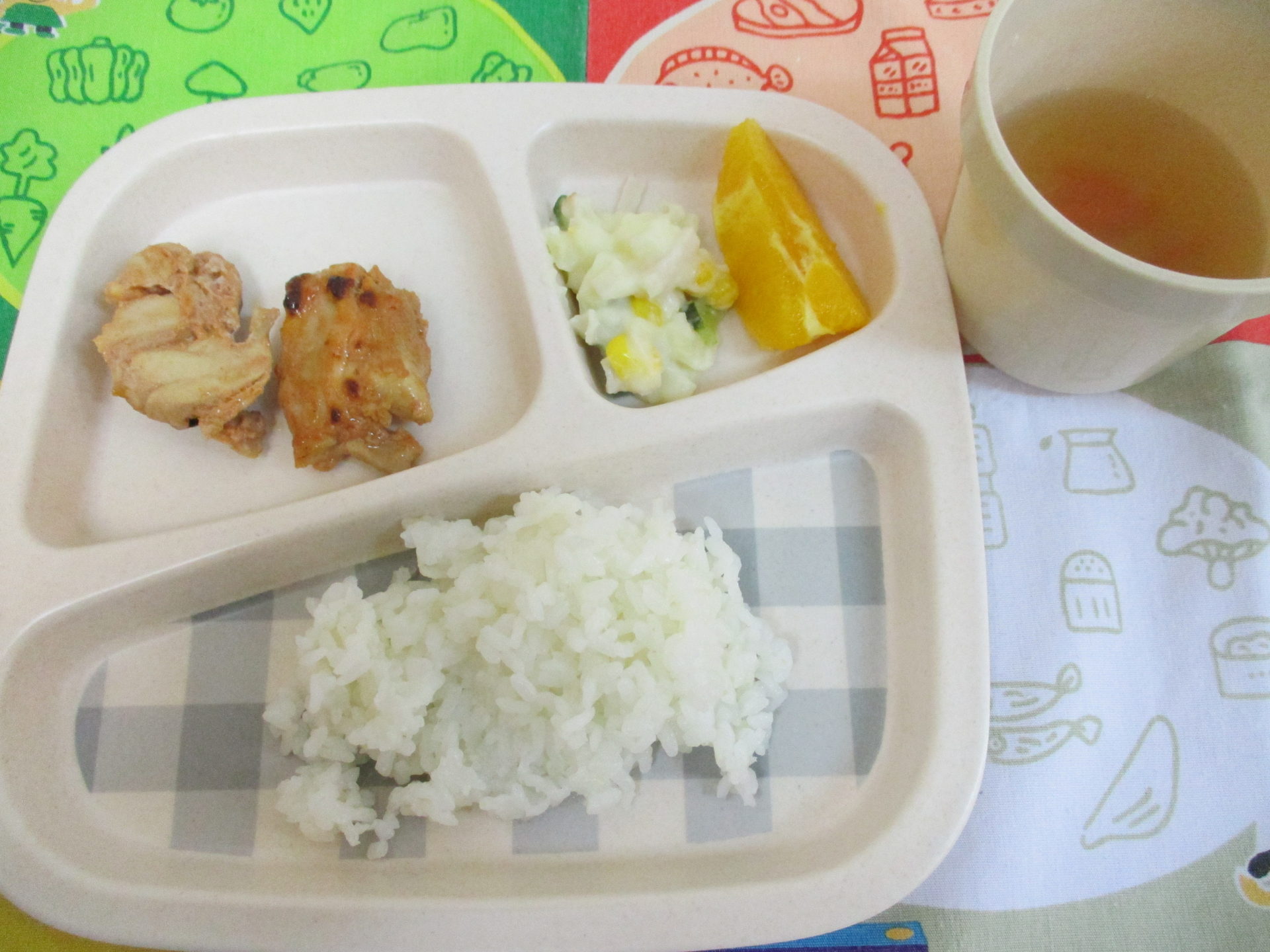 お腹が空いてきたのでお片づけをして給食にしましょう🍚