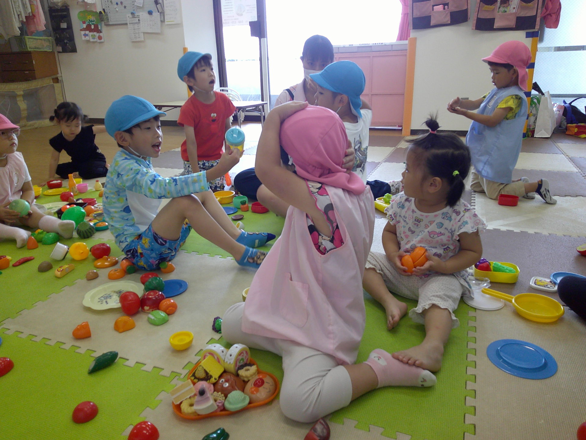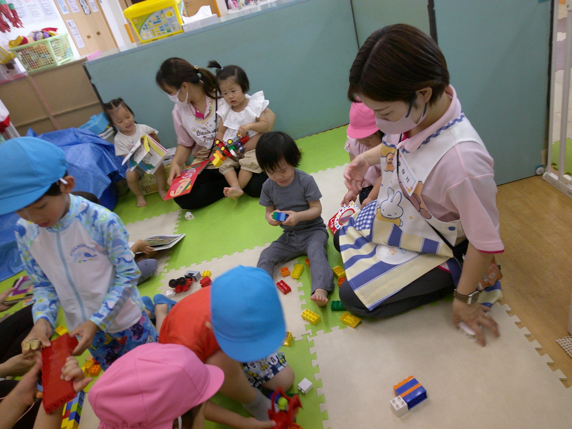 大きなお兄ちゃんお姉ちゃんと、こあら組さんはおままごと、うさぎ組さんはブロックをして遊びましたよ~