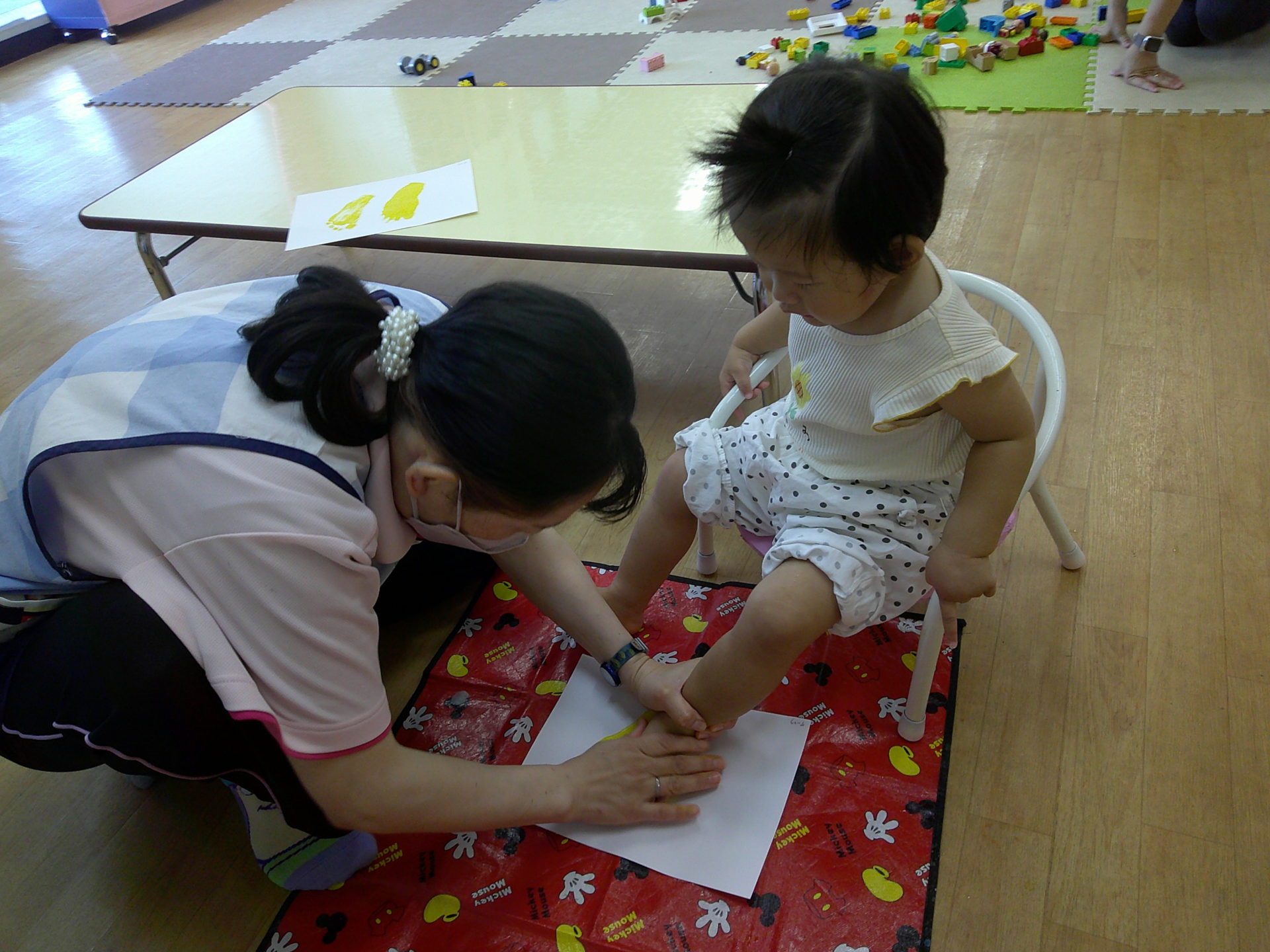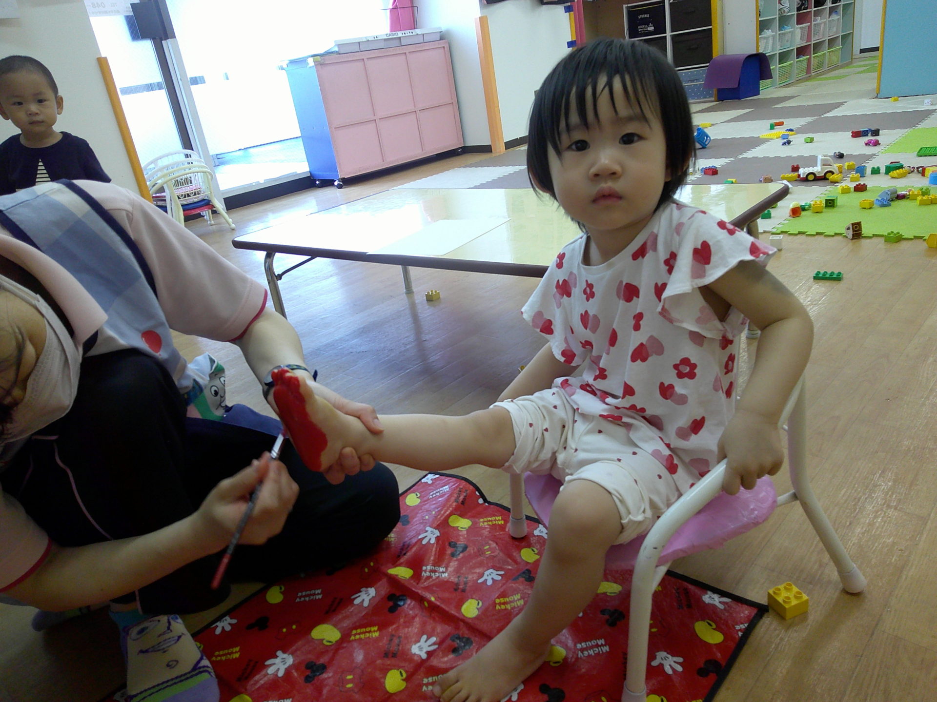 筆で塗るのでくすぐったそうにしているお友だちも😊