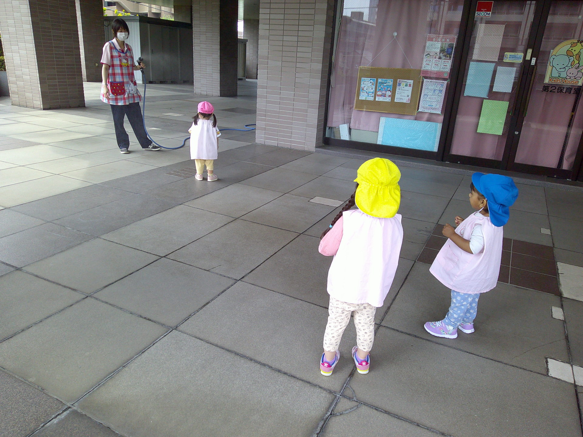 手だけお水を掛けたり、ミストのシャワーを浴びて遊びました。
