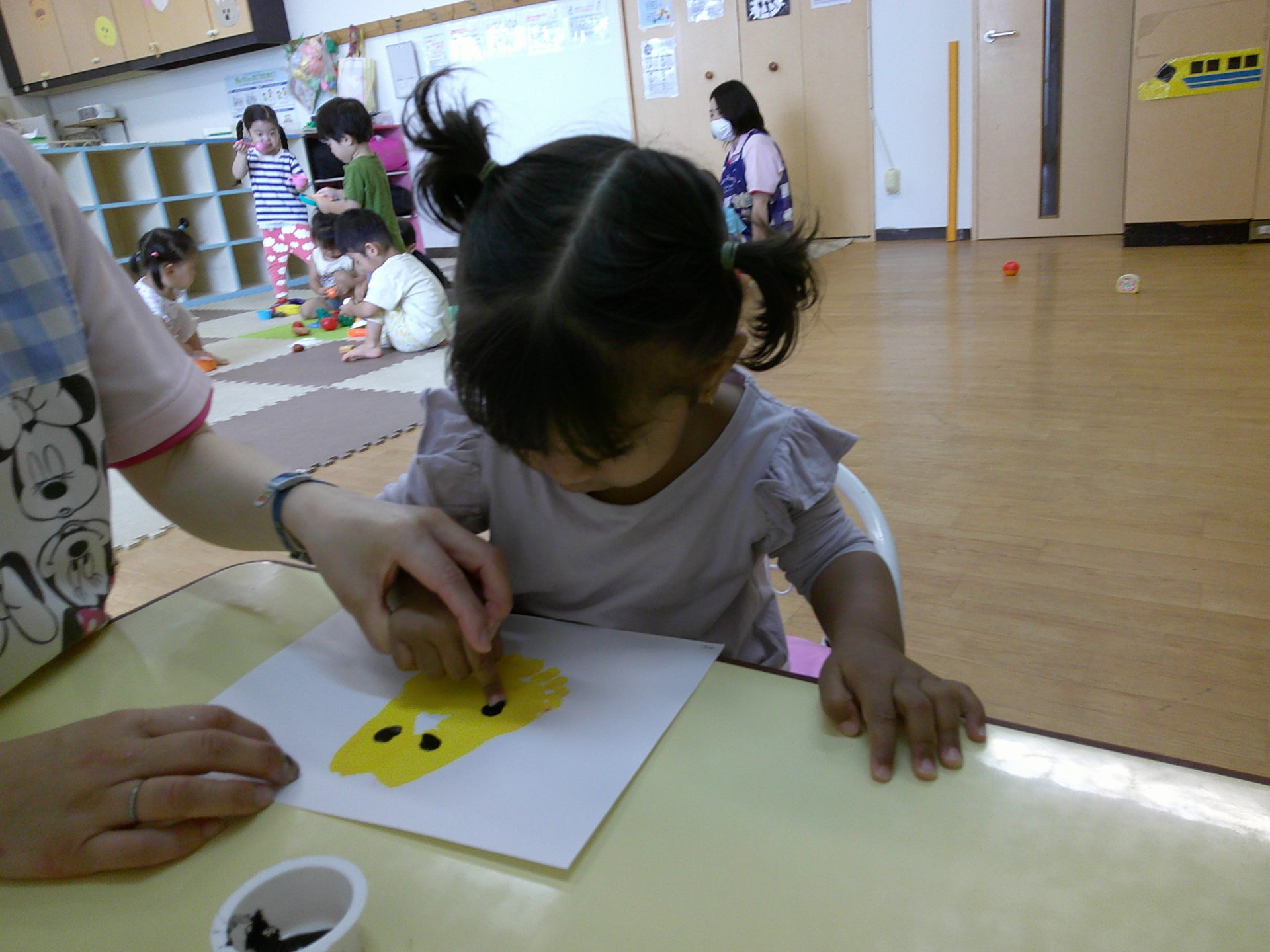 足に絵の具を塗ったり、指でペタッとしました👉