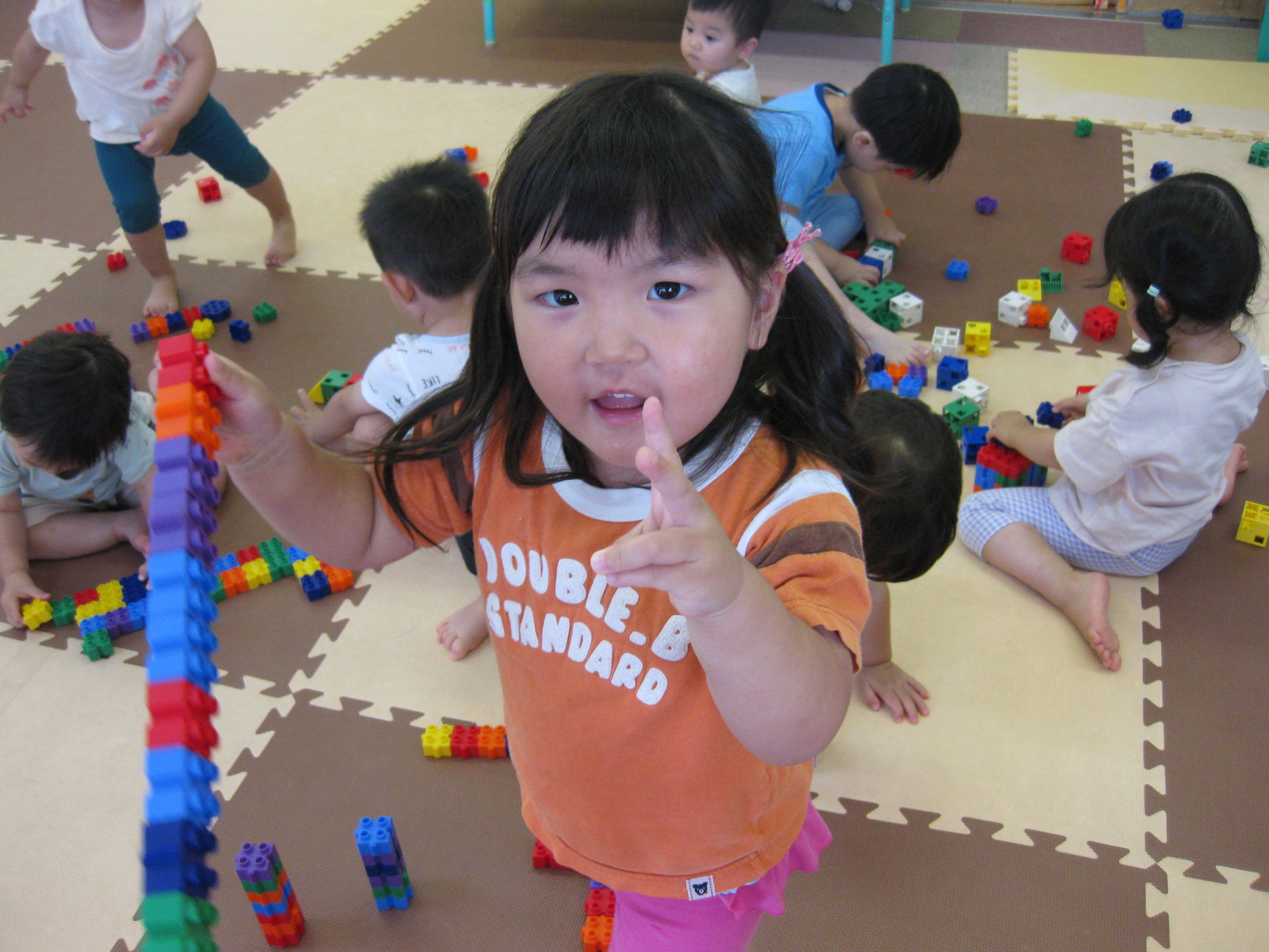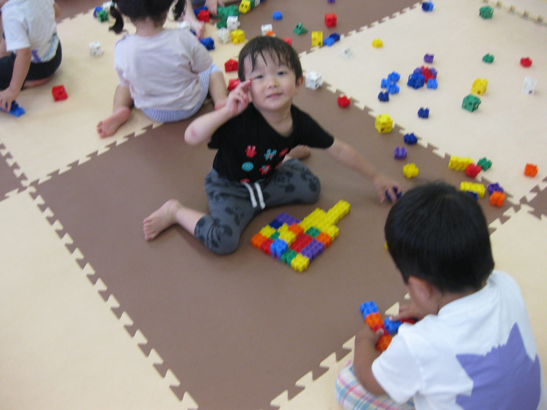 水遊びの後は、お着替えをしてブロックで遊びました。