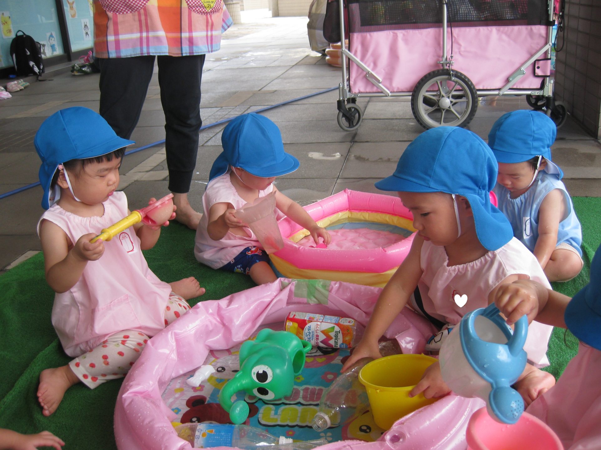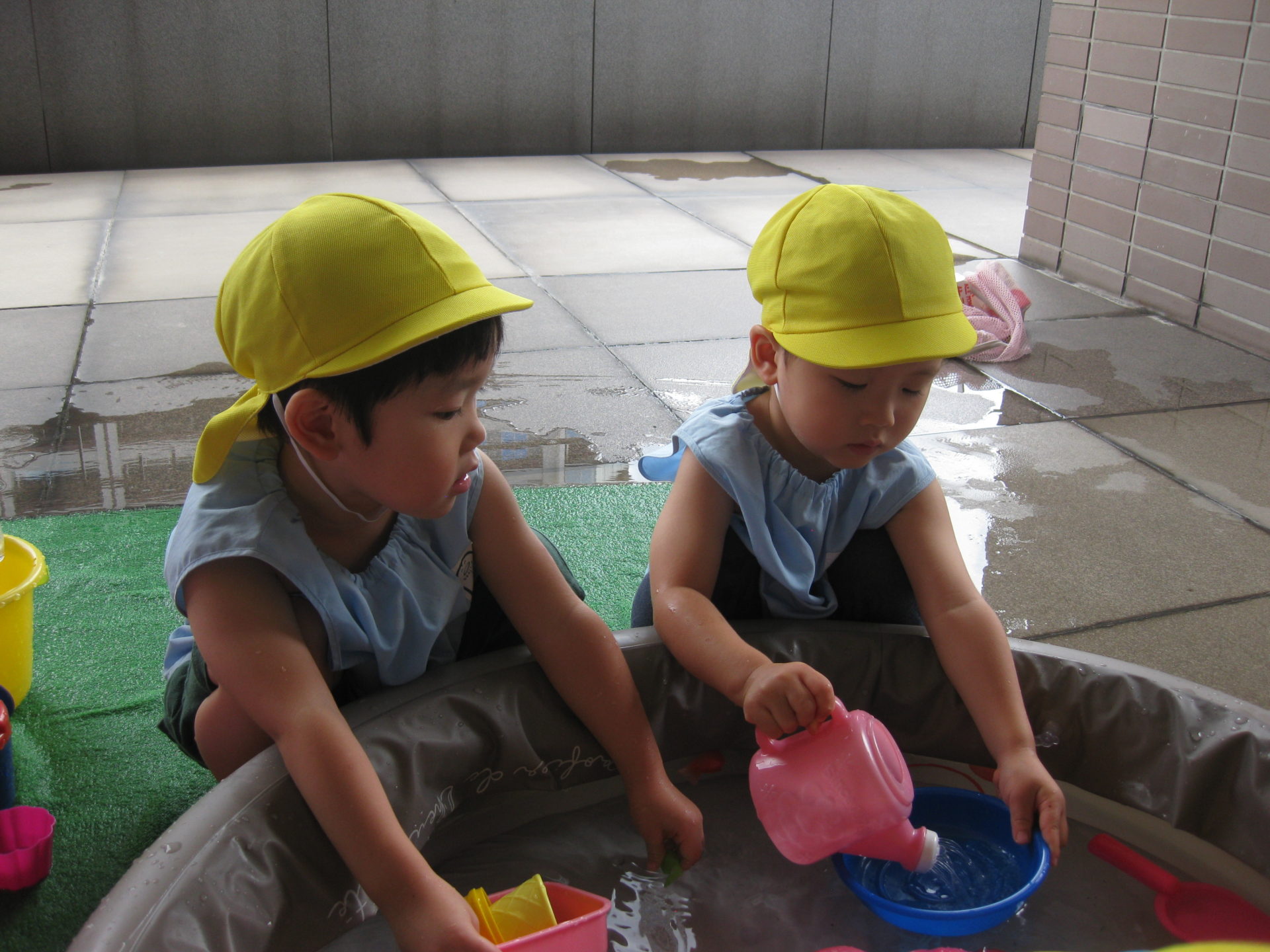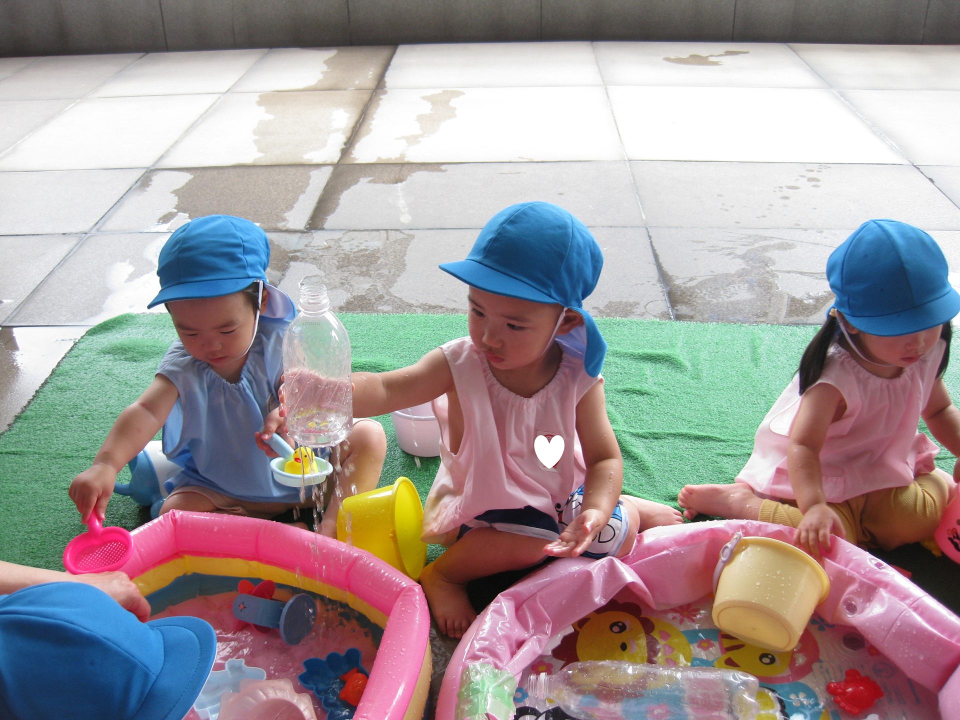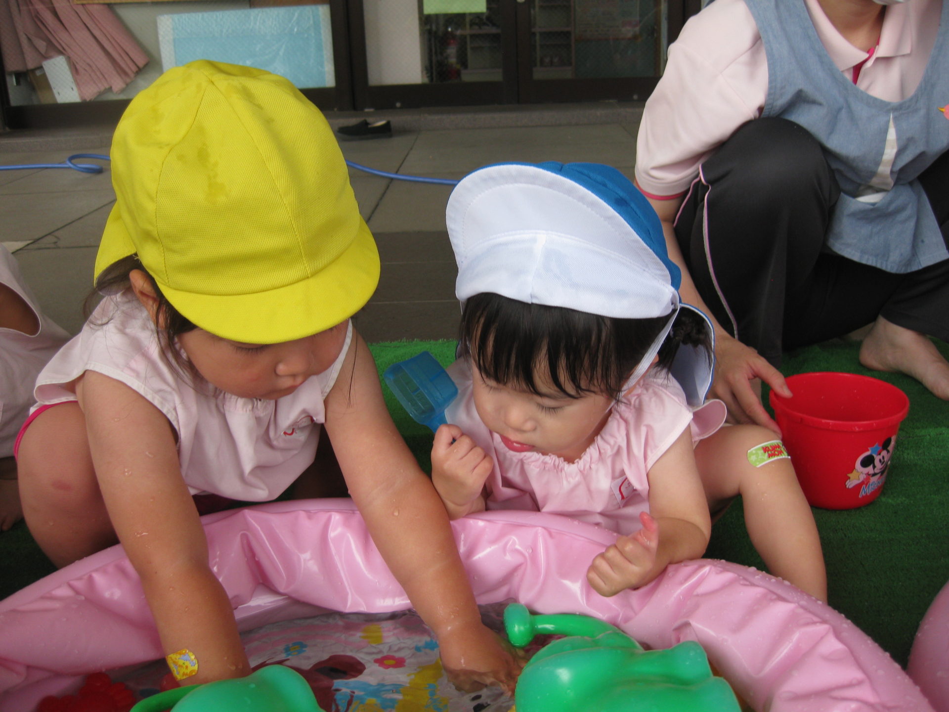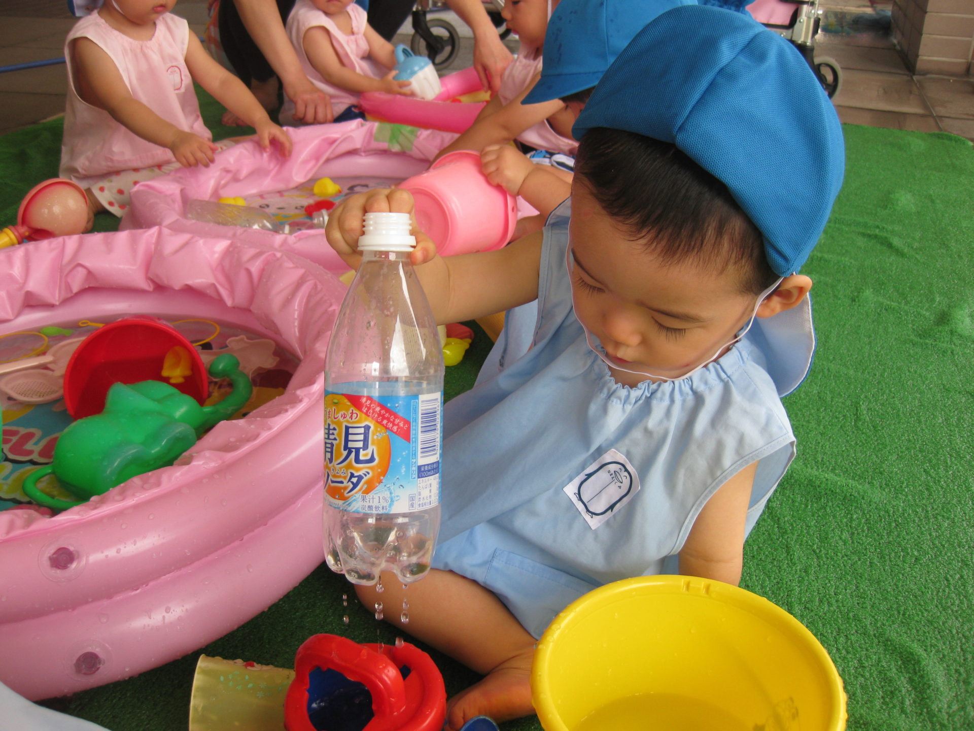 気に入ったおもちゃでじっくりと水の感触を味わい、楽しんでいましたよ♬