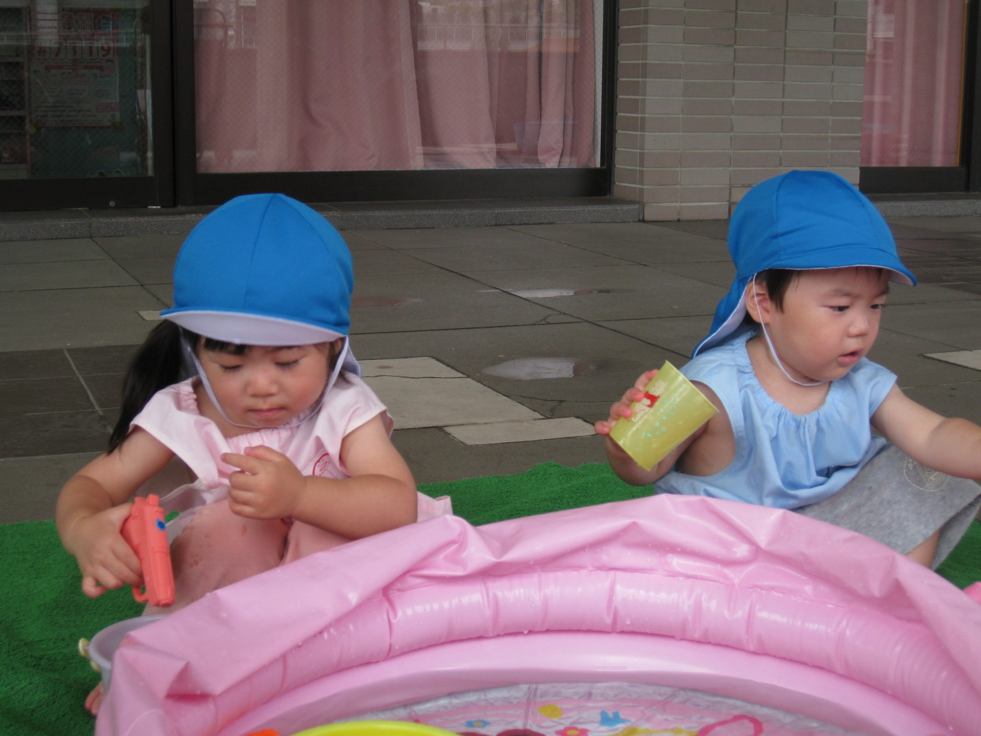 好きなおもちゃを身の回りに集めたり、水鉄砲やお魚鉄砲で遊びました😊
