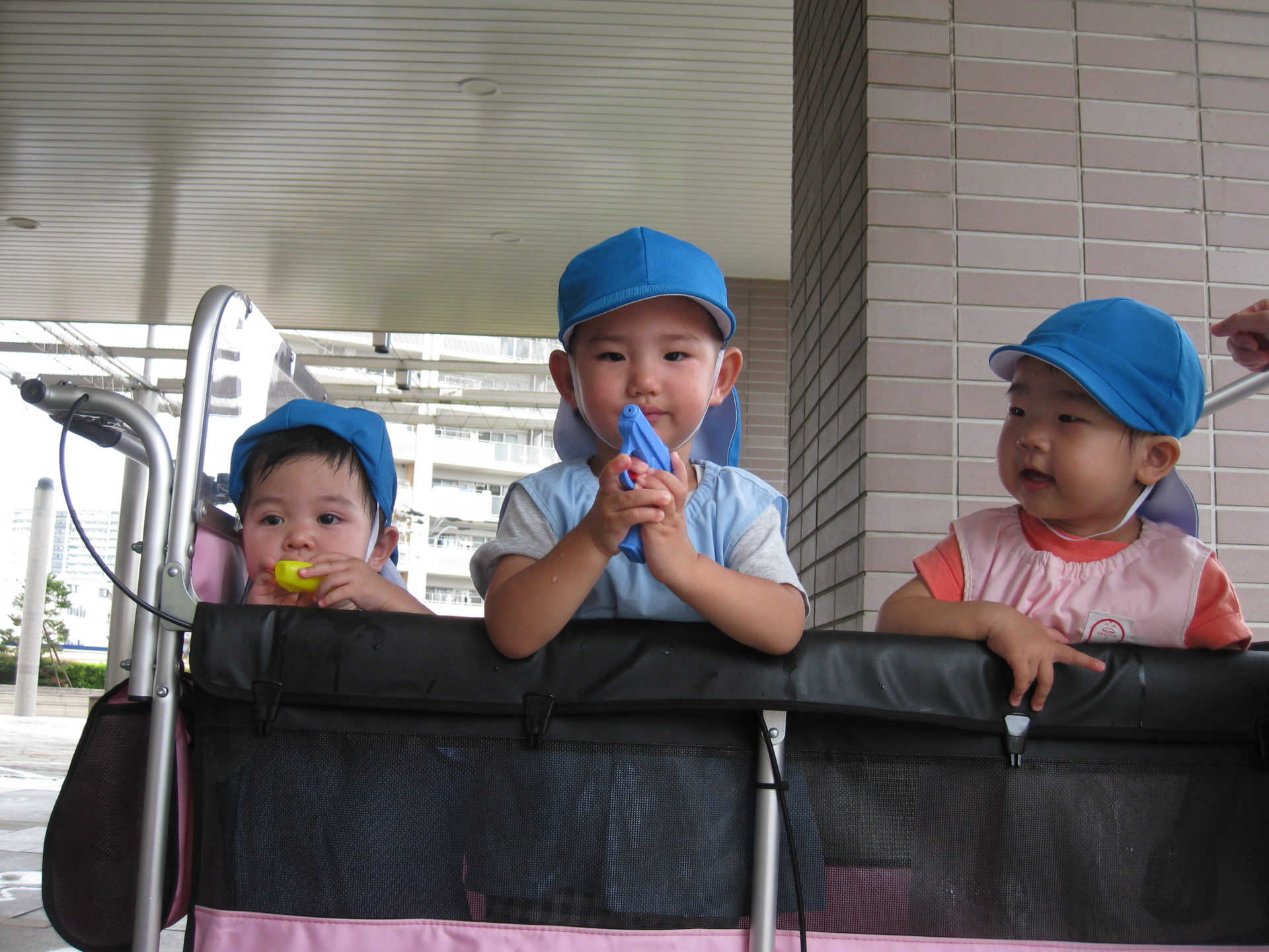 見学のお友達は、カートの中から水鉄砲で遊んでいる子を狙い撃ち!?🤣