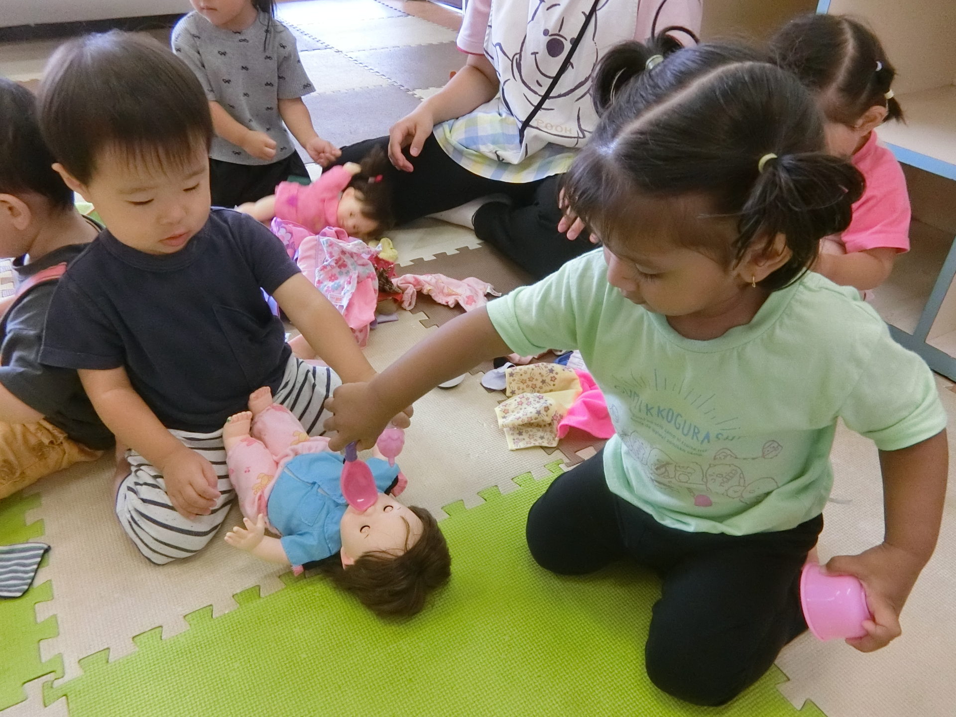 ミルクをあげたり、お友達と2人で赤ちゃんのお世話をしたりと集中して楽しんでいました。