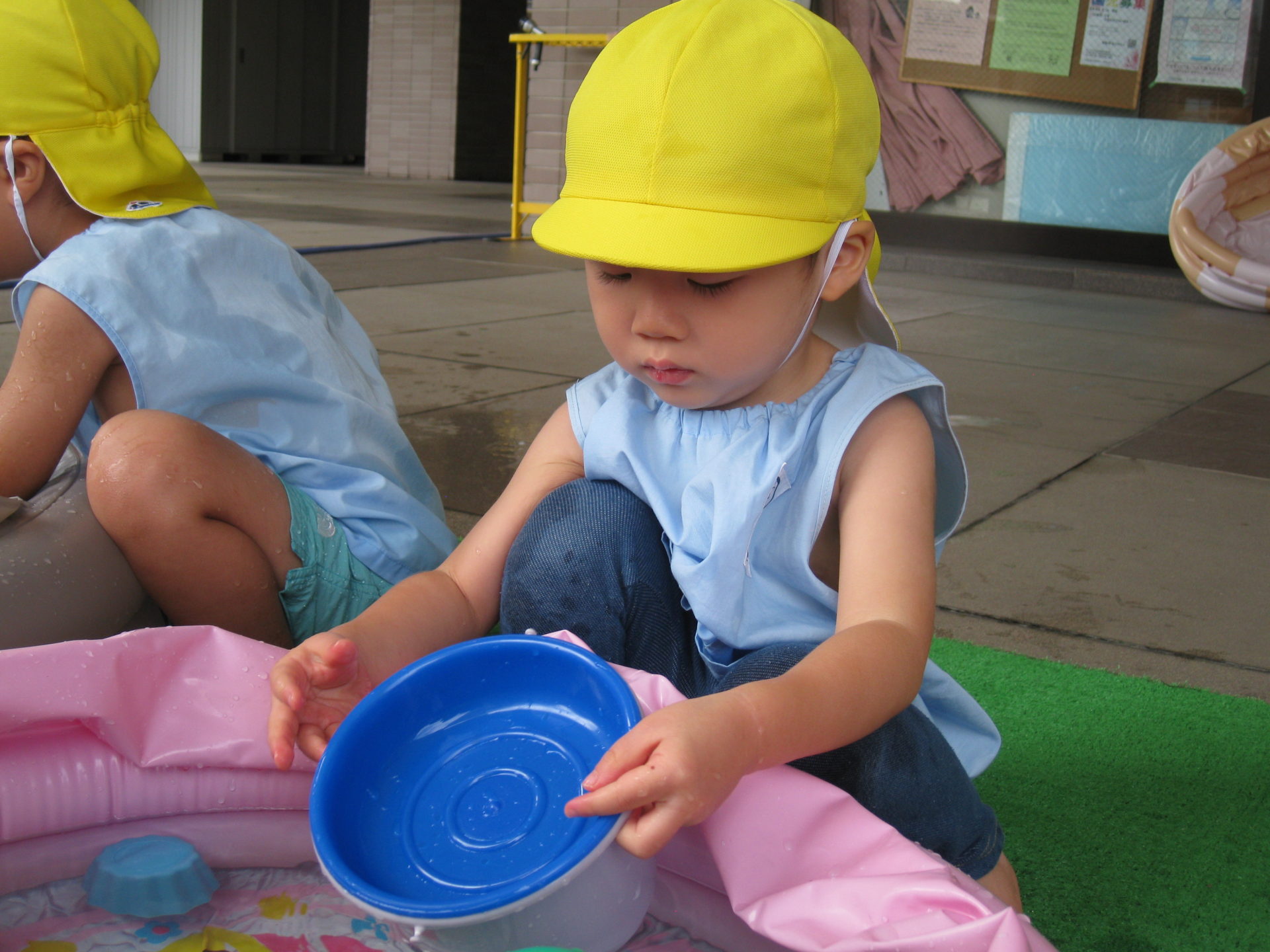 昨日に引き続き曇り空⛅でしたが今日は水遊びを行いました!
