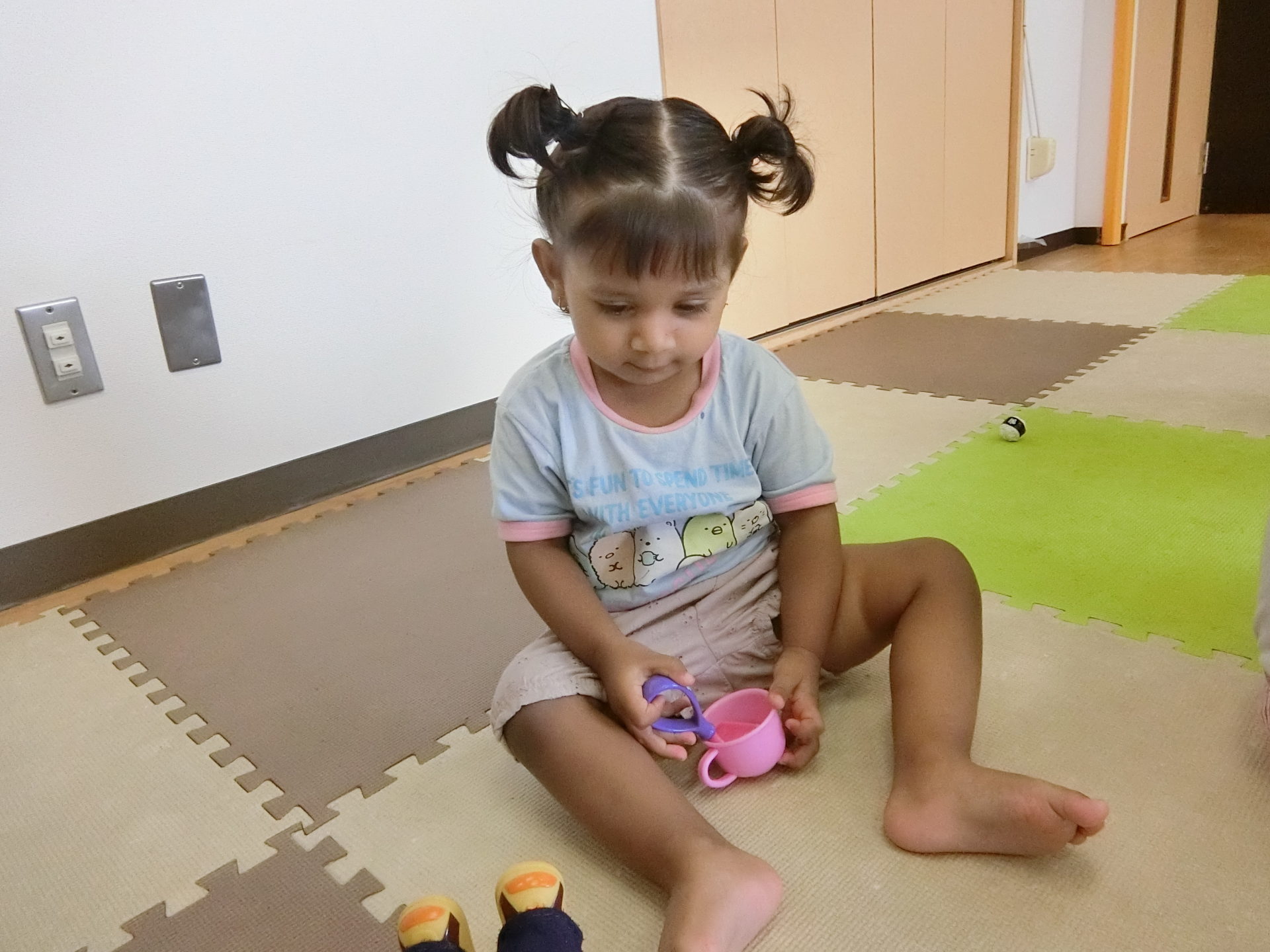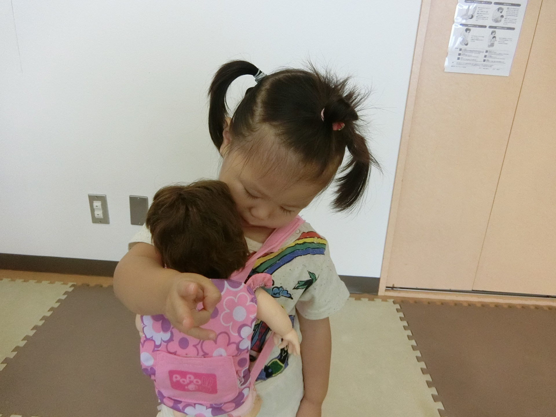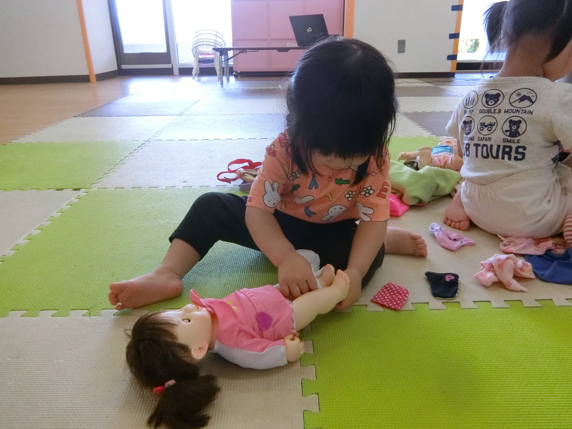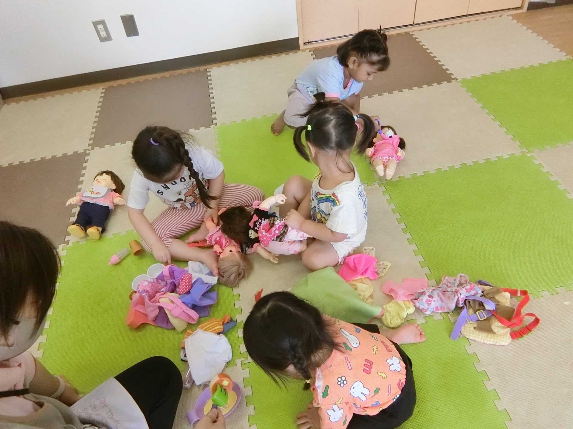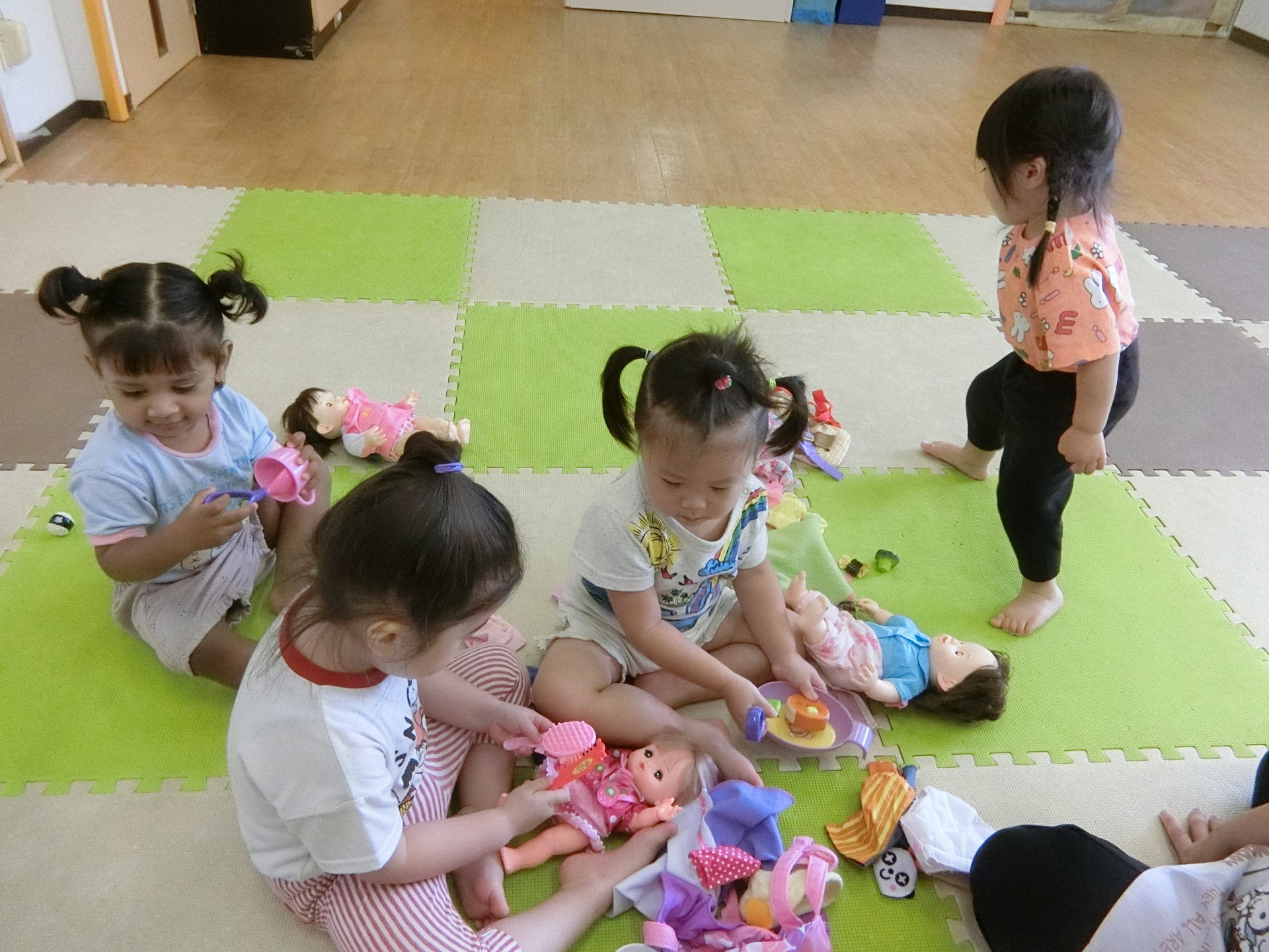 今日登園してくれた4名の女の子たちもお人形が大好きで楽しく遊びましたよ。