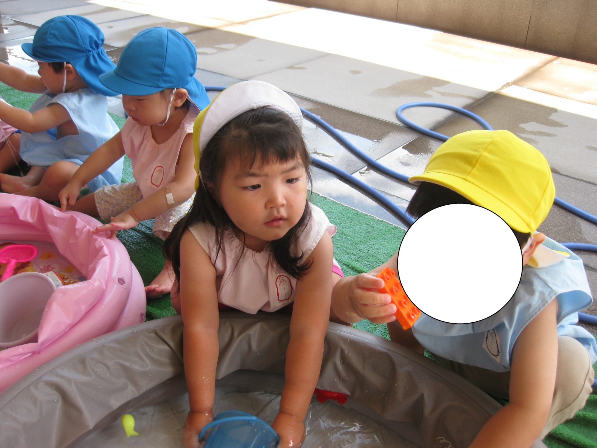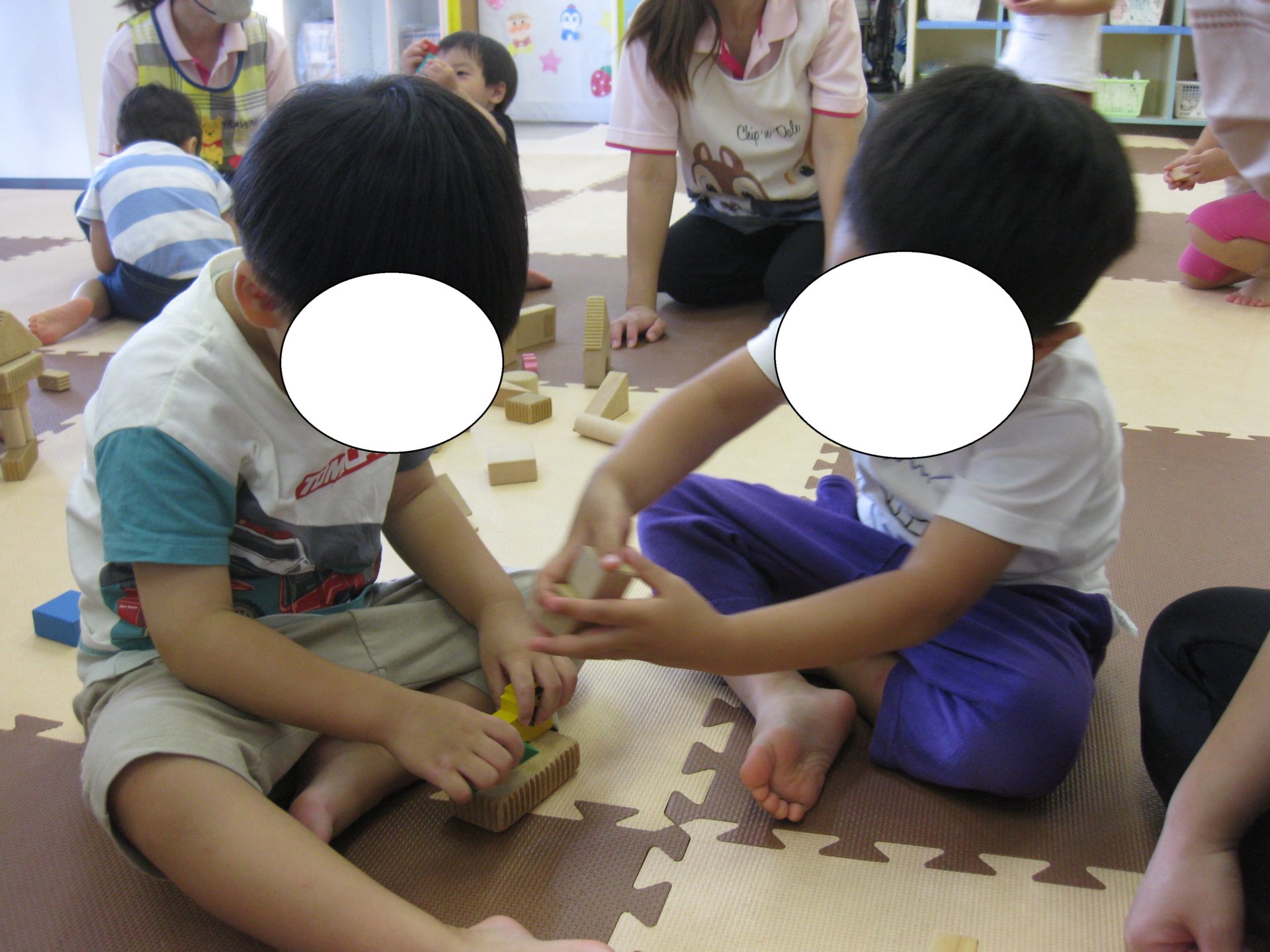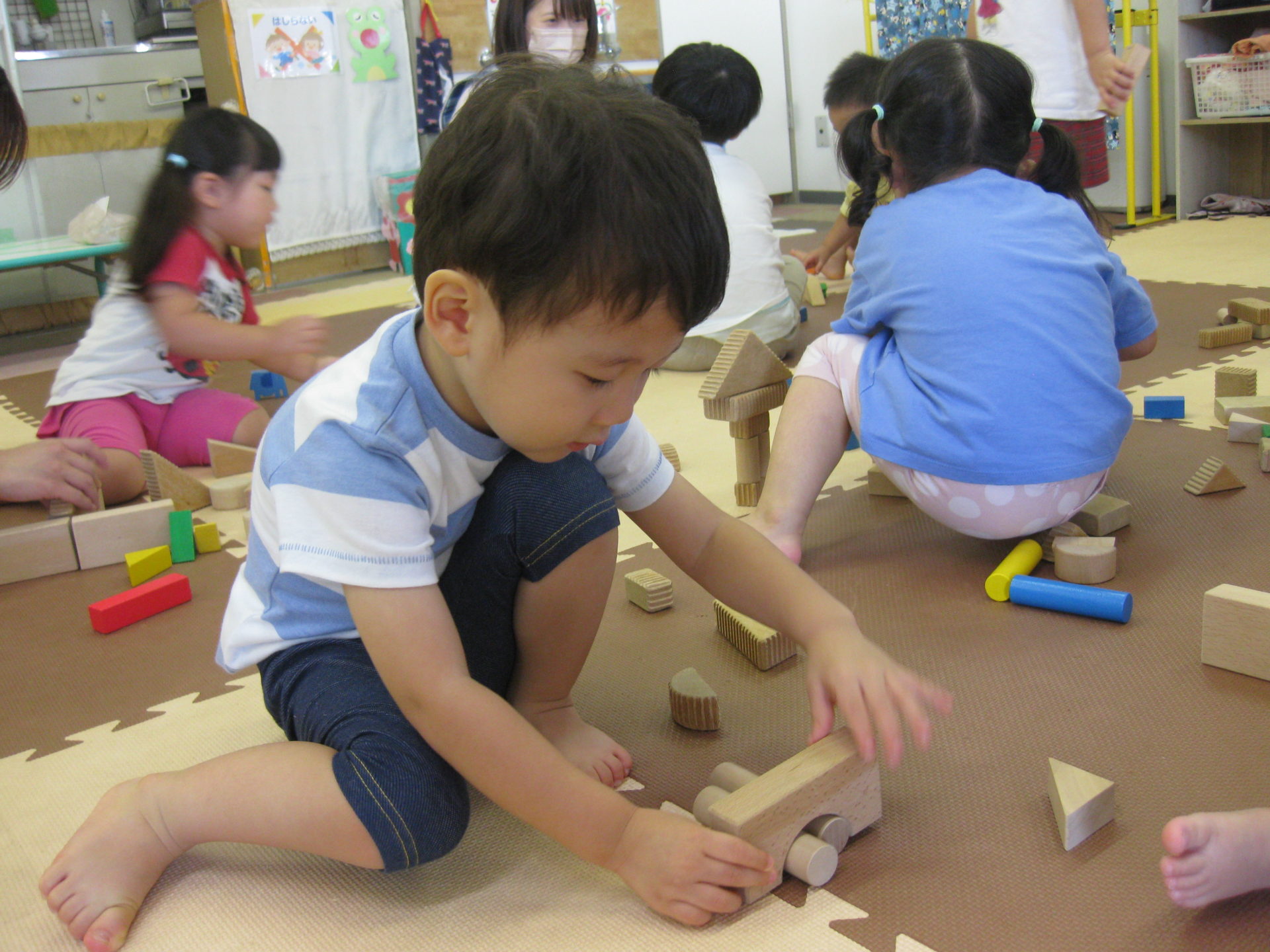 体操の後は、水遊びの時間まで積み木遊びです。