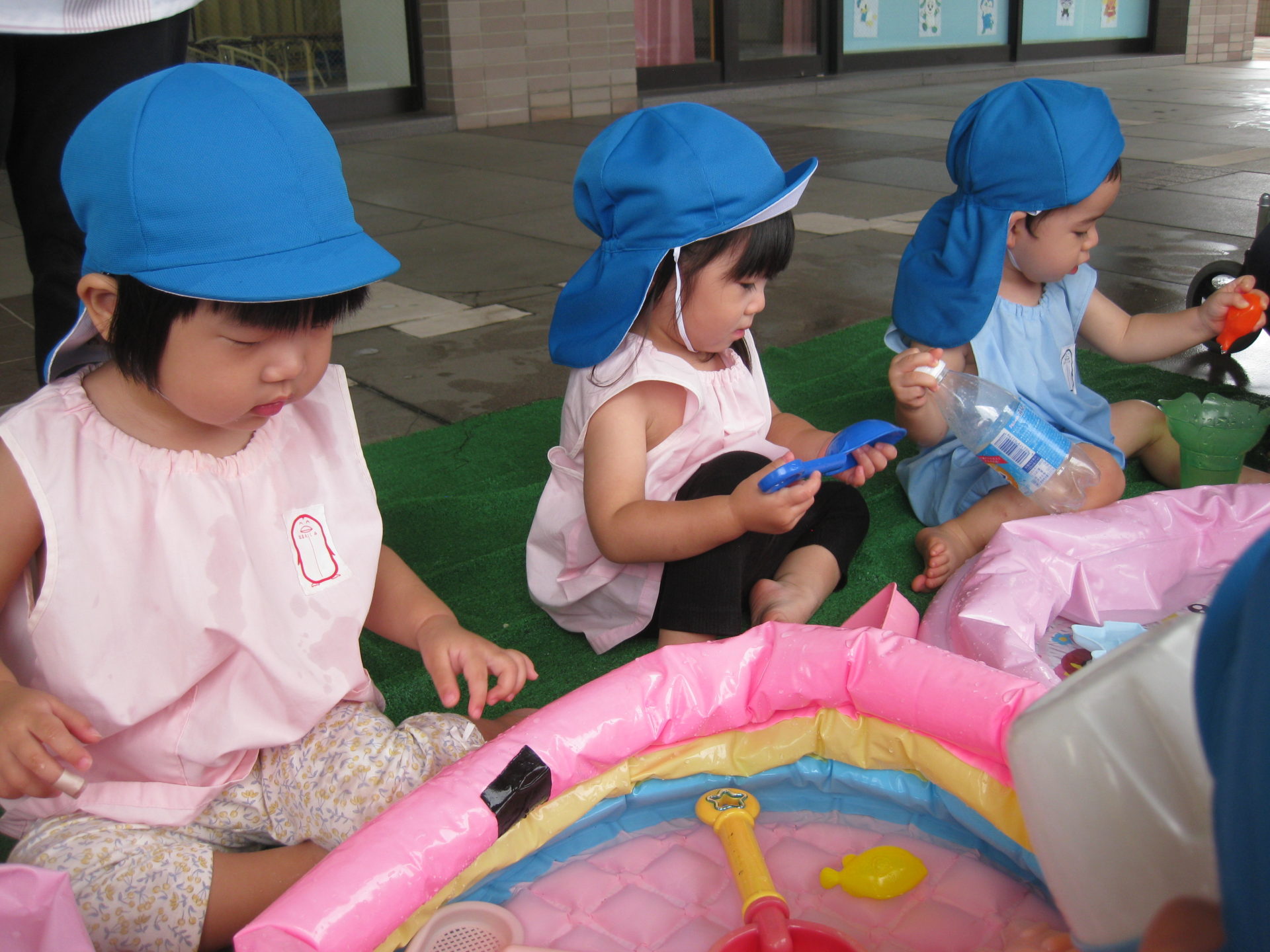 今日は朝からお日様が顔を出してくれましたが、だんだんと雲が…😥お水遊びできるかな??と心配していましたが、みんなの思いが届いたようでなんとかお水遊びをすることが出来ました✨