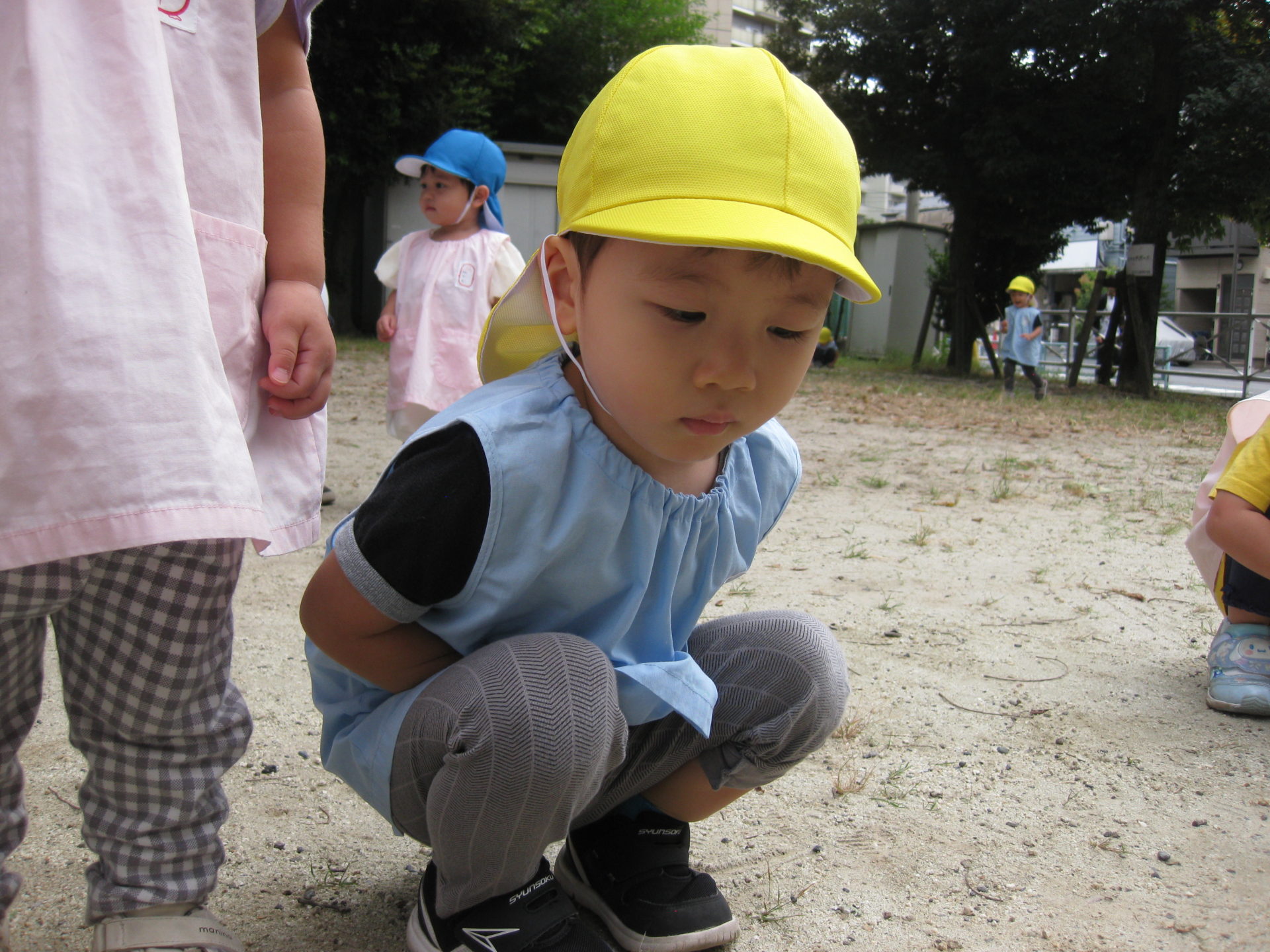 「せんせい見て~」というので近くに行ってみると、草むらを2匹のちょうちょが飛んでいることを教えてくれました🦋 ちょうちょの邪魔にならないように、少し離れたところでそ~っと見て楽しむお友達たちでした👏