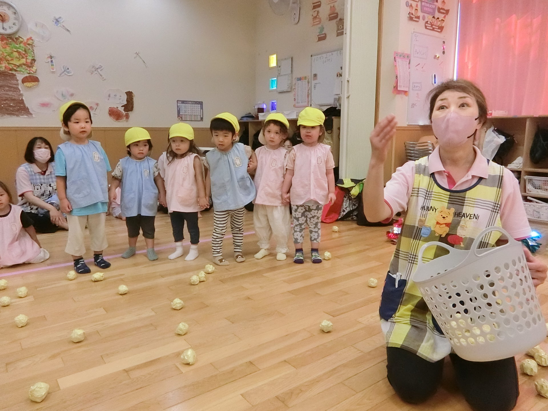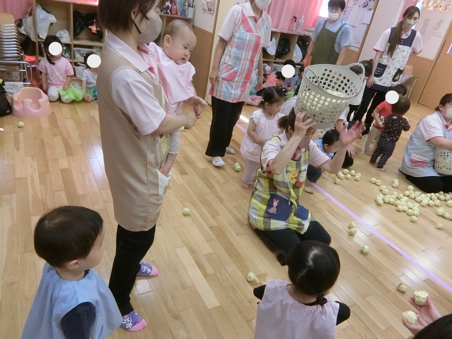 ボール遊びの好きなお友だちも多いので、カゴめがけて上手に投げていました。