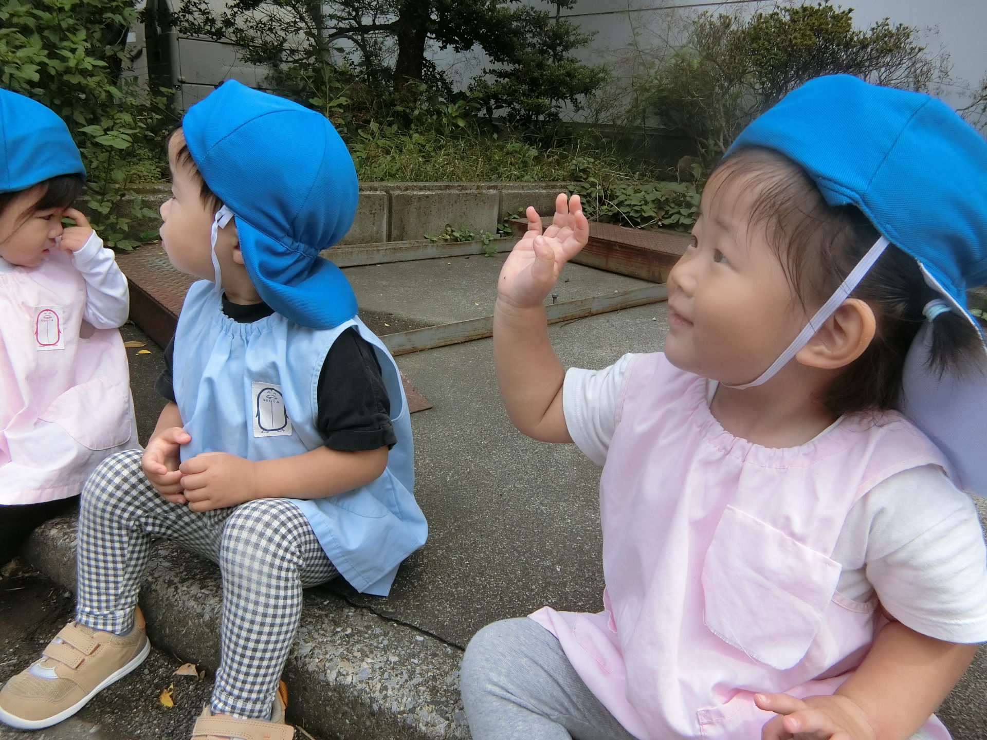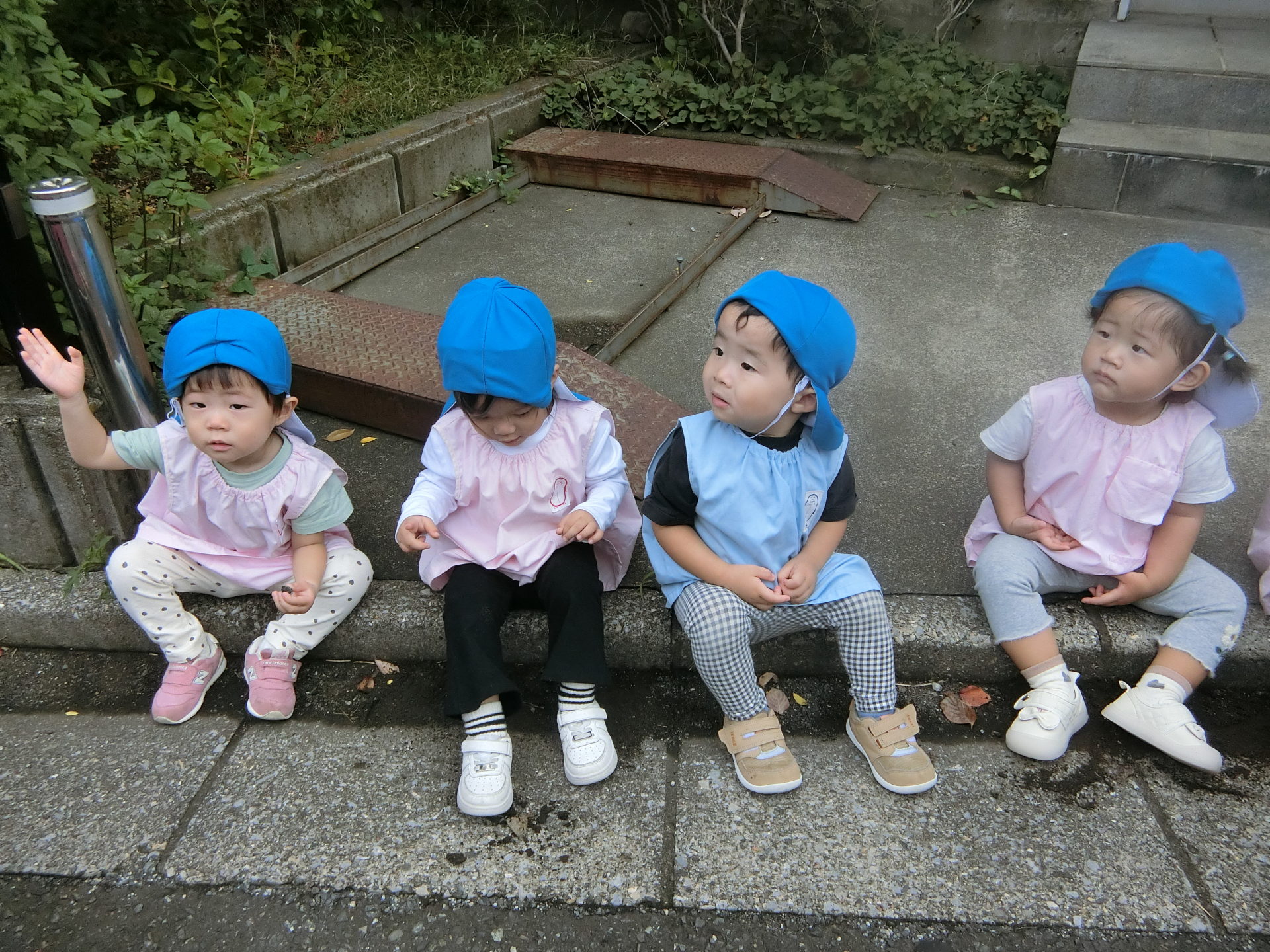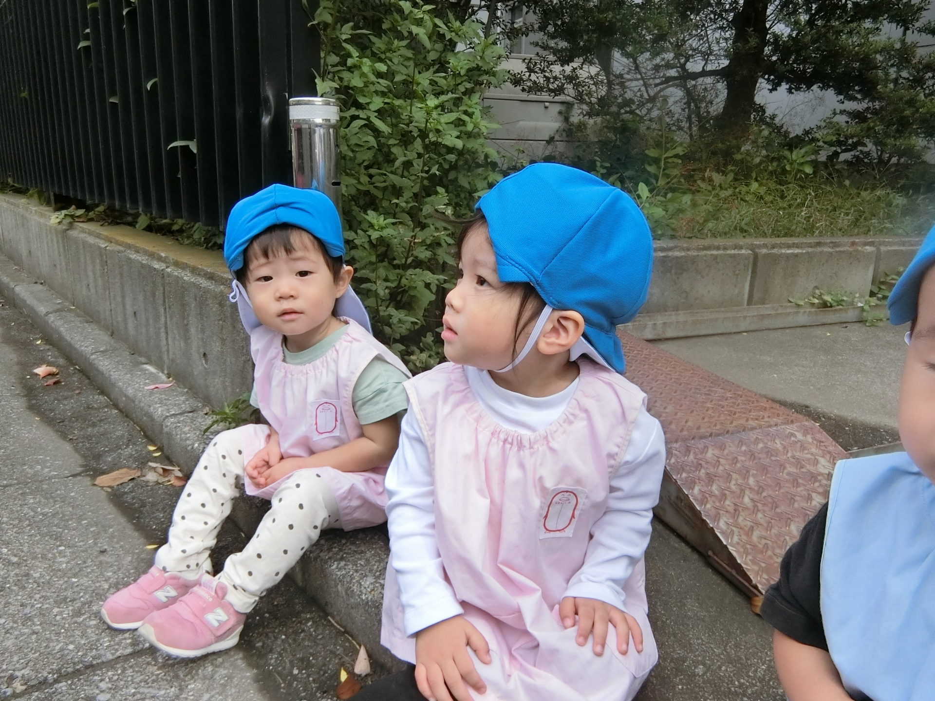 今日は、ひよこぐみさんとうさぎぐみさんは園周辺をお散歩にいってきました。