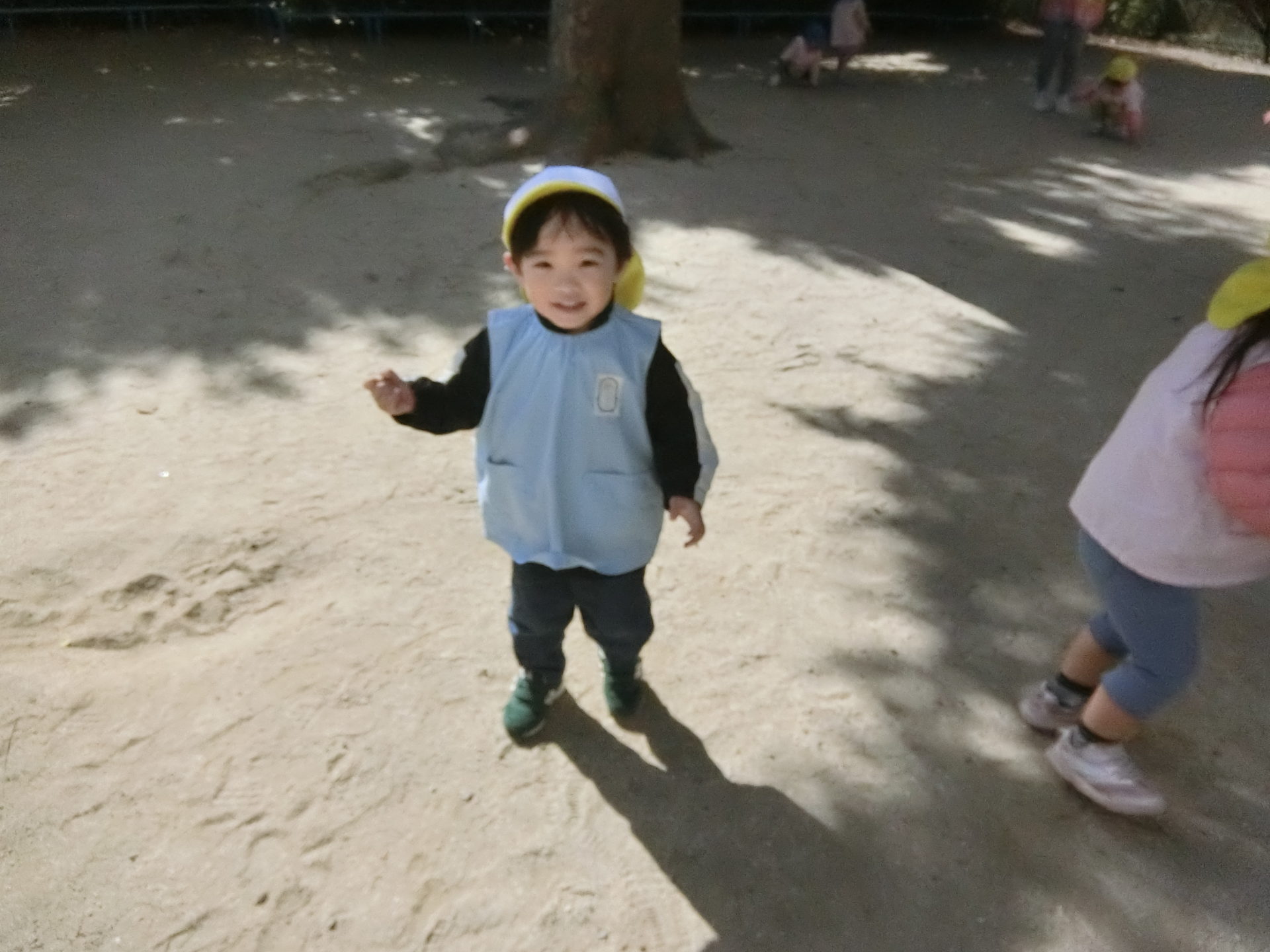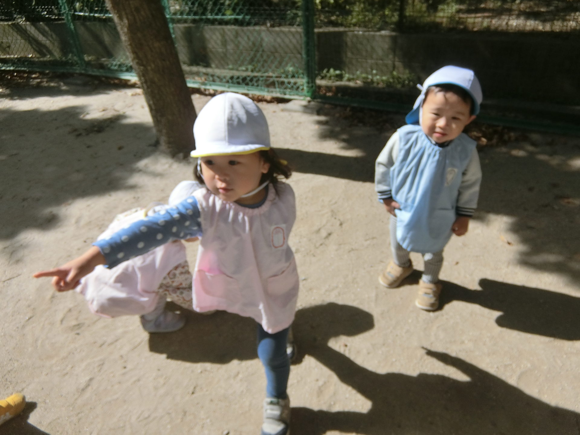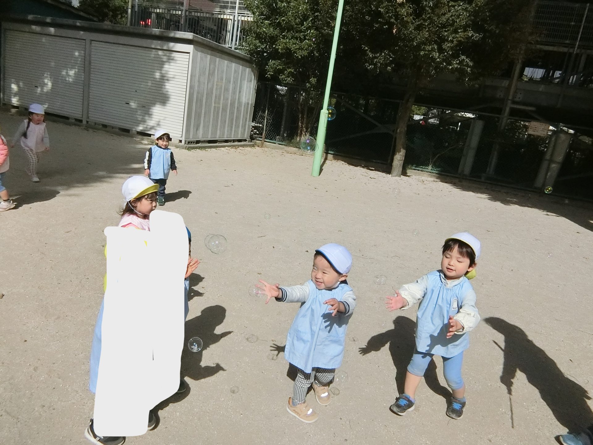避難訓練、かけっこが終わった後は、思い切り身体を動かして走ったり、どんぐりを拾ったり、シャボン玉を追いかけたり、たくさん遊んで、楽しみました♬