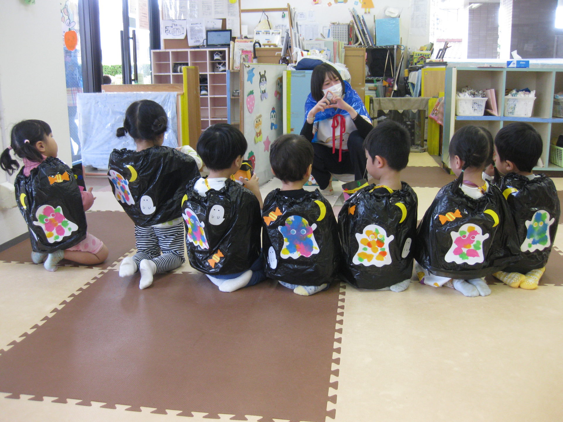 ハロウィンの衣装とお菓子入れ、お菓子は本日お持ち帰りします。どうぞおうちでもハロウィンをお楽しみくださいね💖
