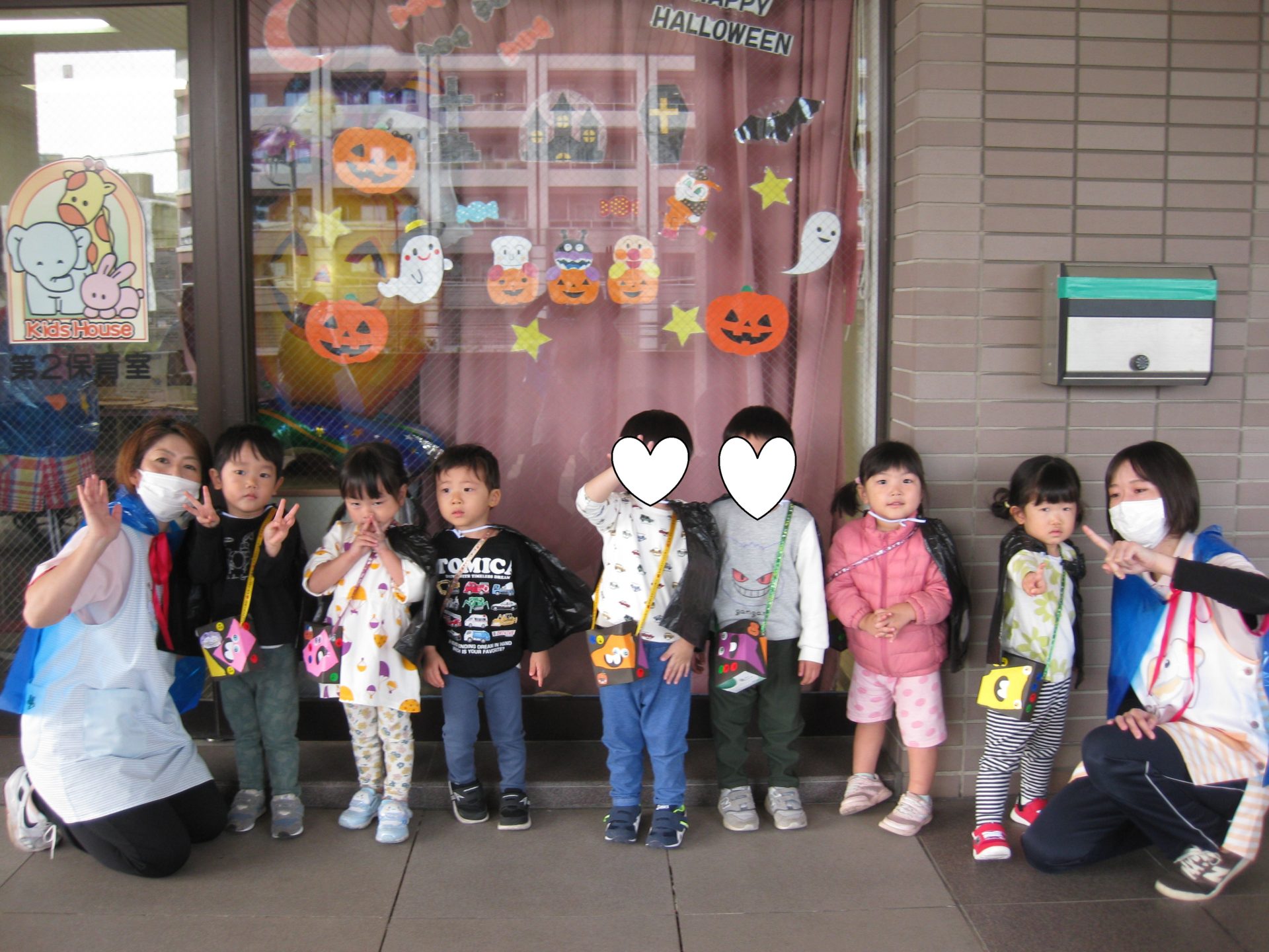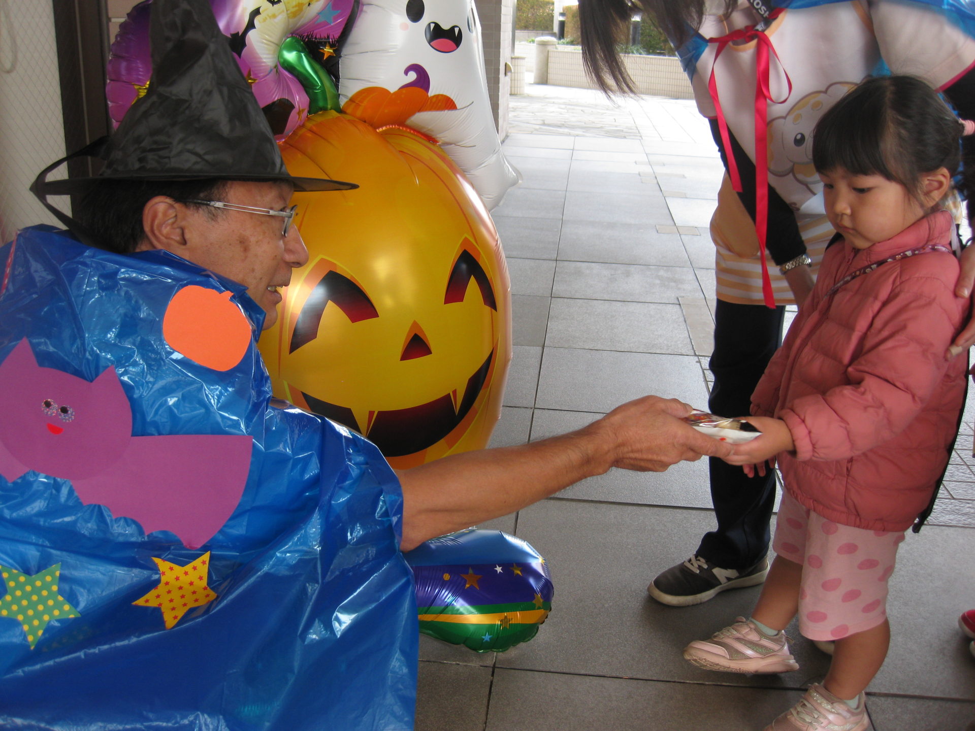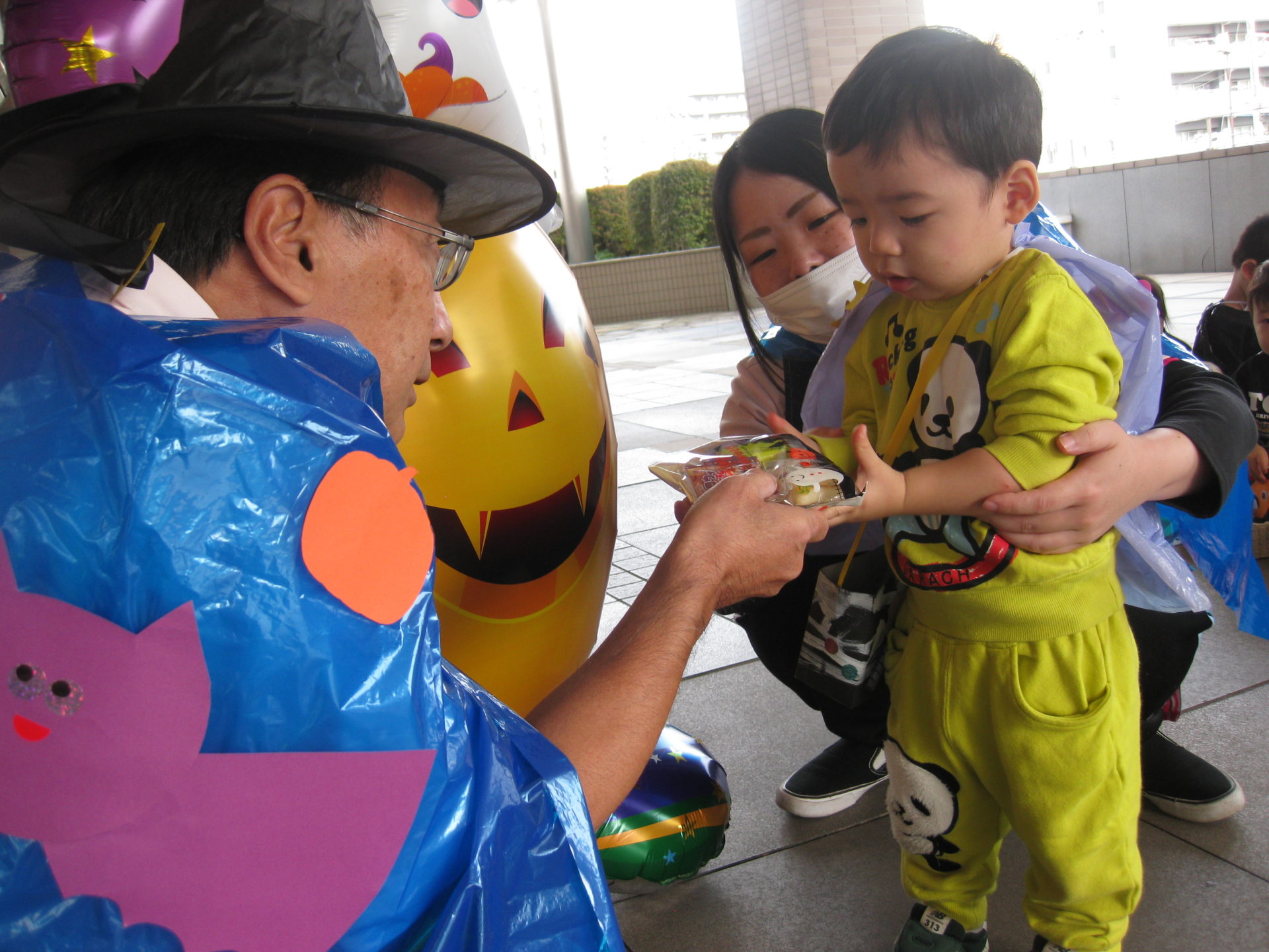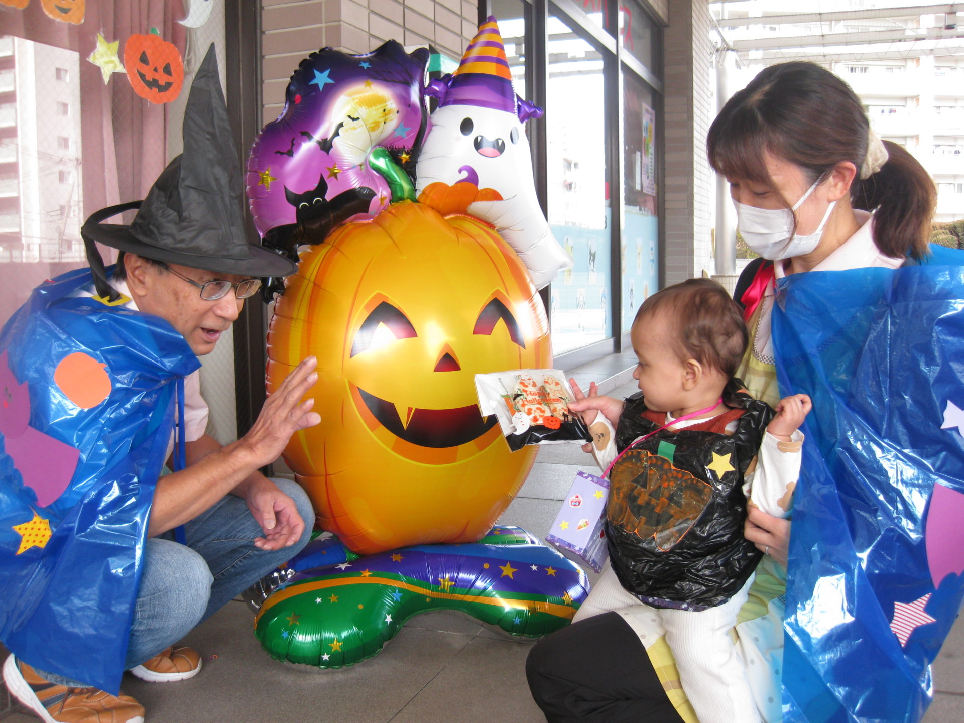 一人ひとり「トリックオアトリート!」と合言葉を言うと…お菓子がもらえましたよ🍭みんな大事そうにお菓子入れへ入れていて、可愛らしかったです💕