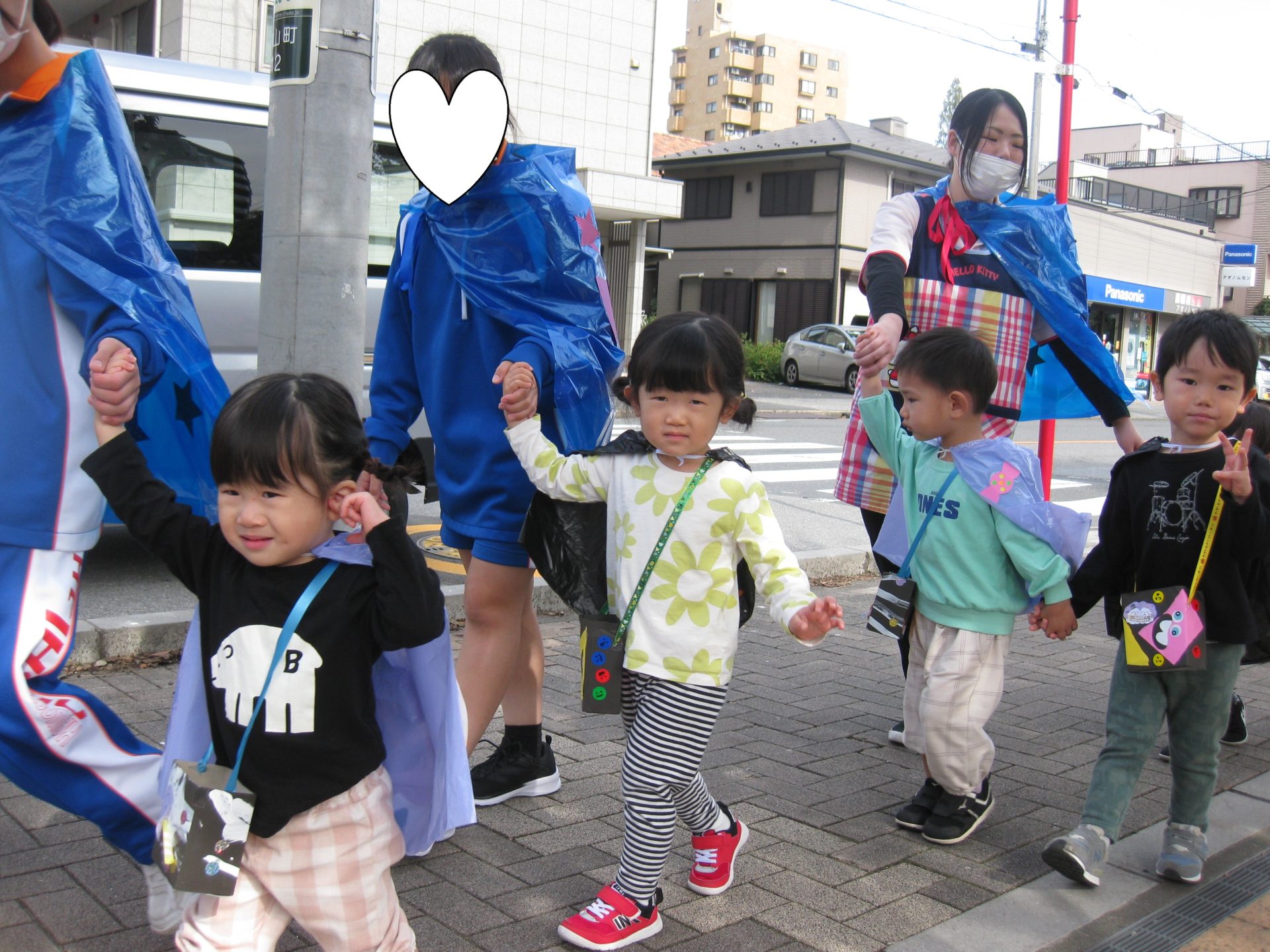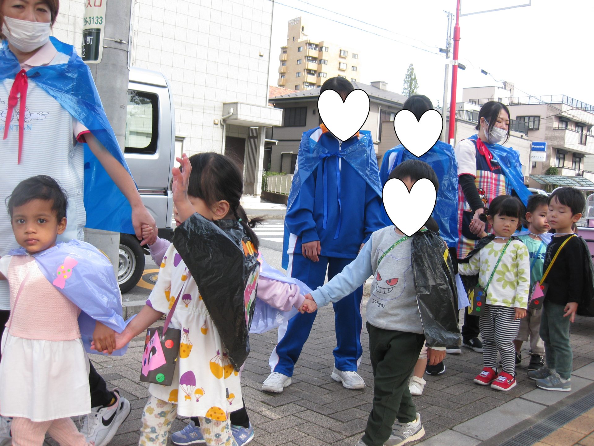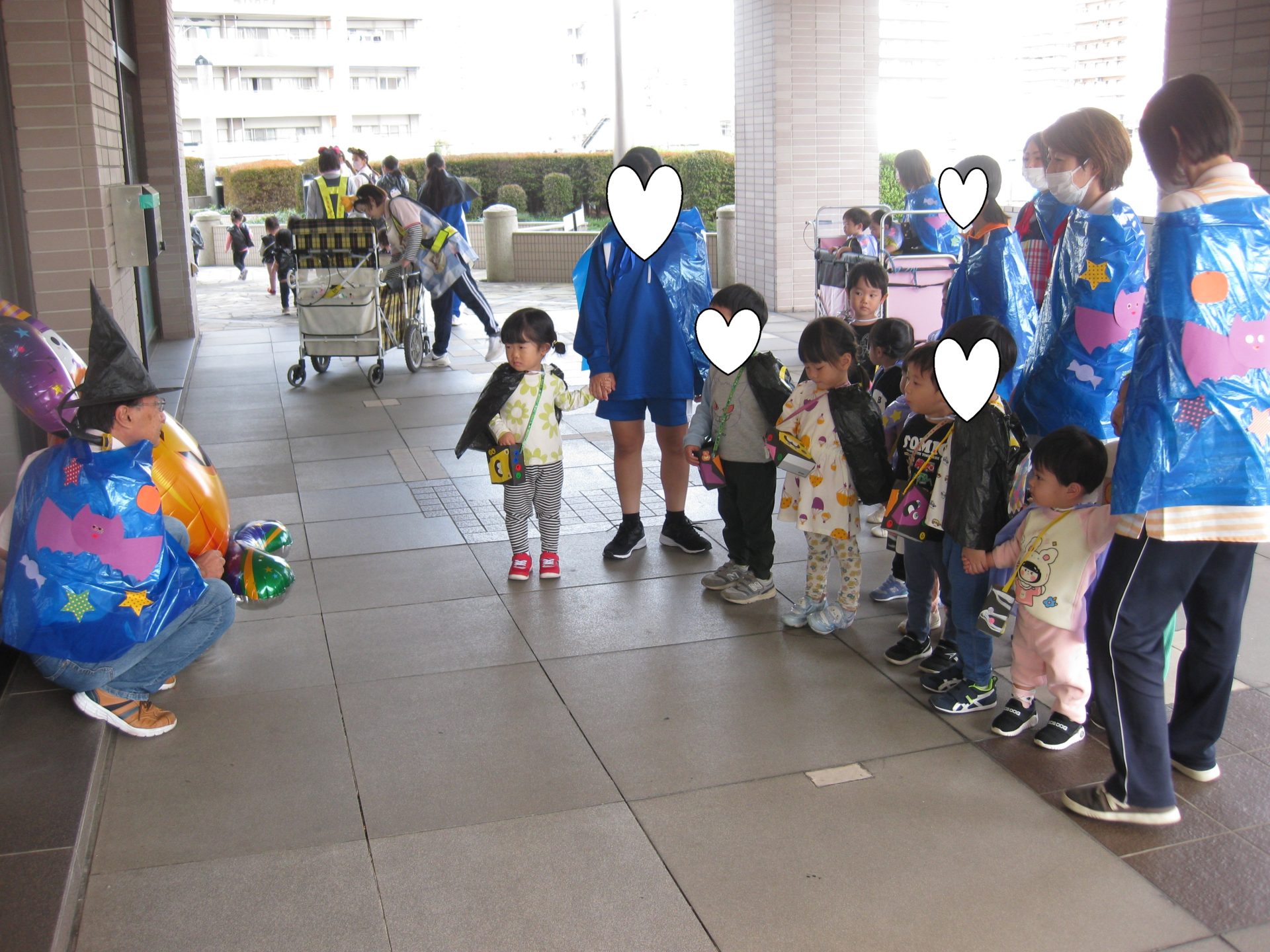 さあ!お製作で作った衣装を身に着けてお外に出ますよ✨