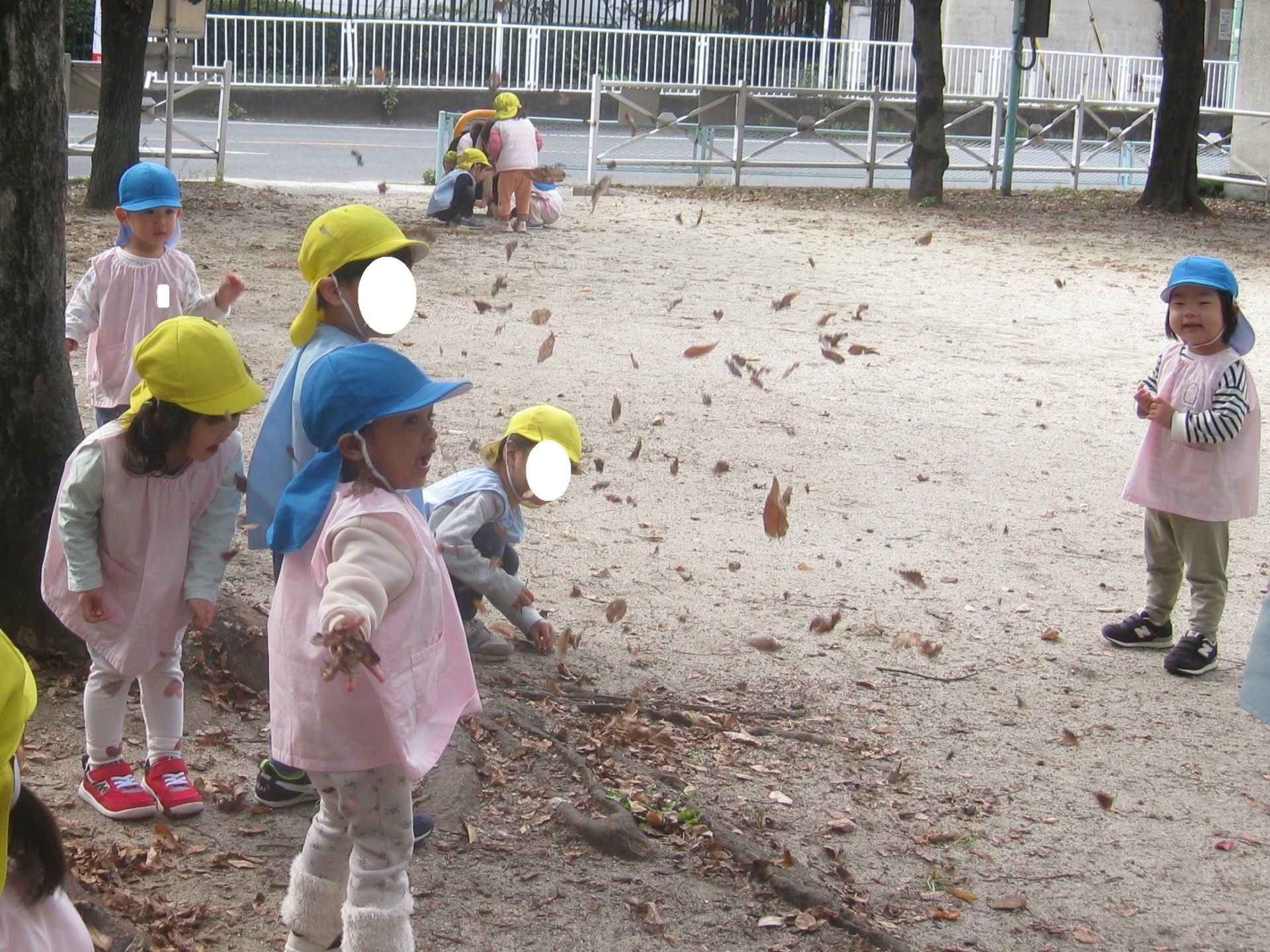 こちらでは落ち葉のシャワーを楽しんでいました🍂