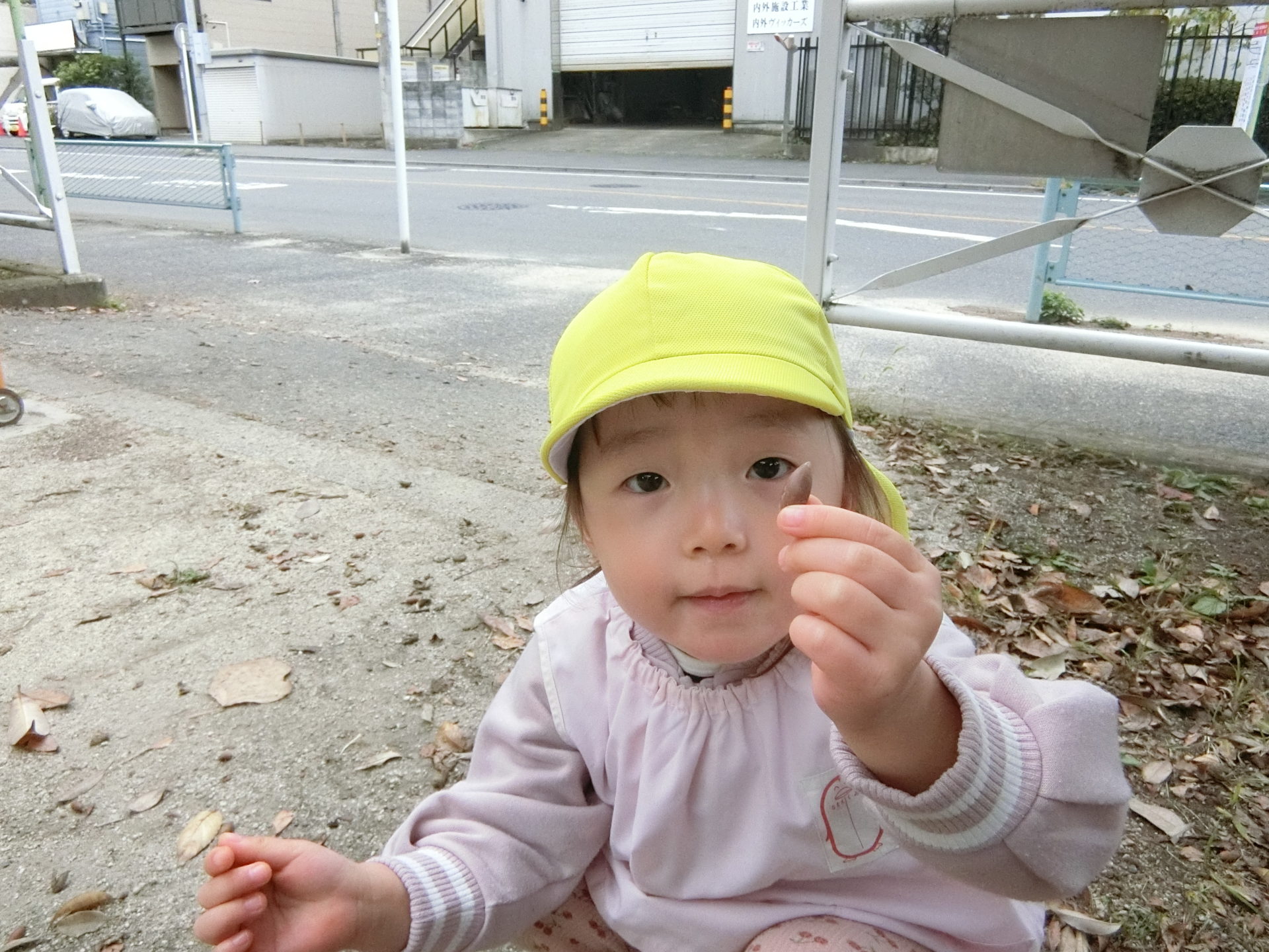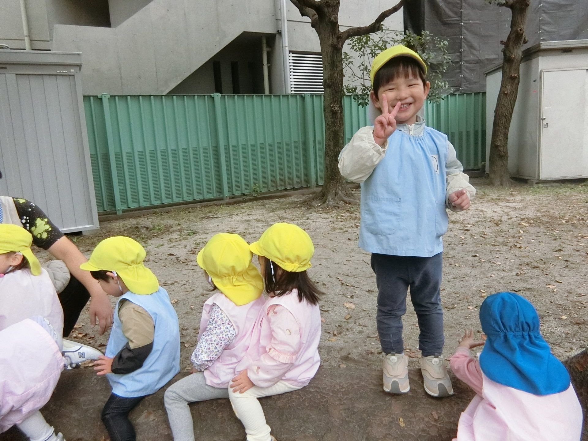 公園では、ドングリ拾い、かけっこ、アリを観察したり、電車を見たり・・・