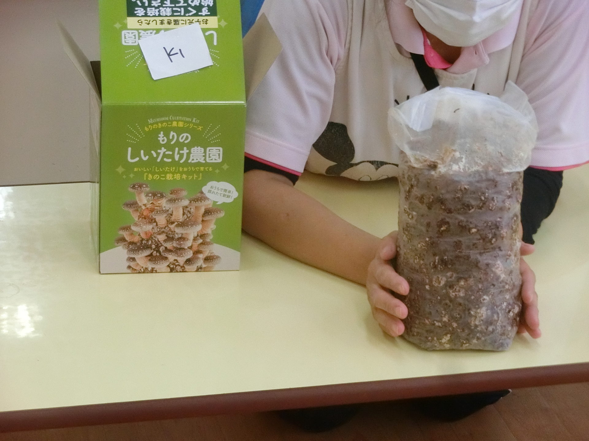 最後に、椎茸の栽培キットが届いたので、袋から出して育てる準備をしました。