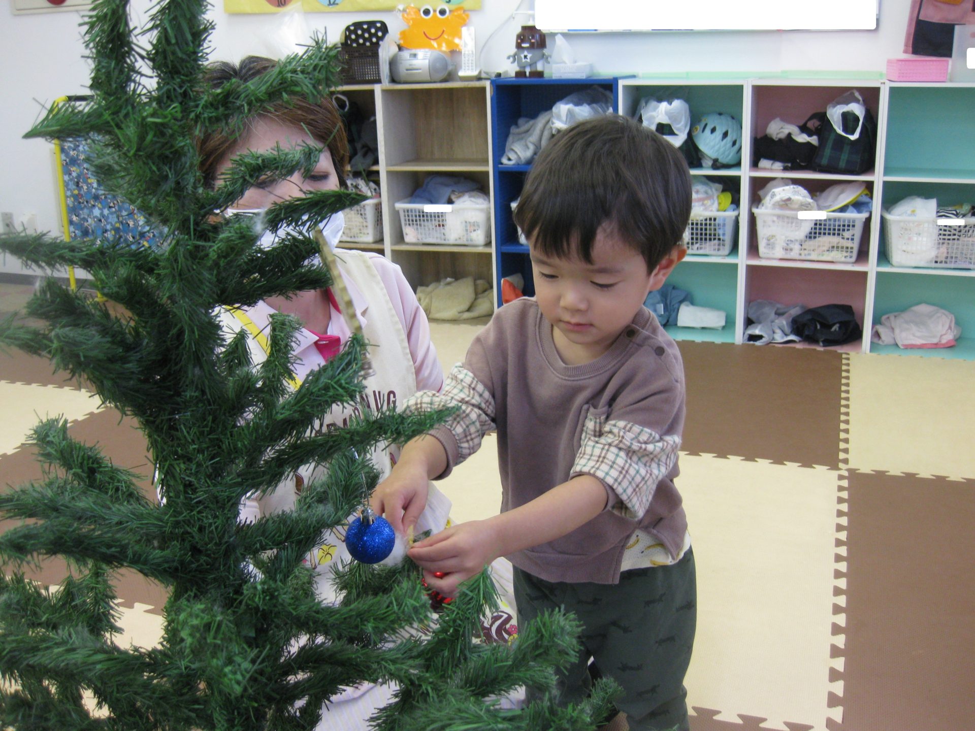お部屋でクリスマスツリーの飾付けを行いました🎄