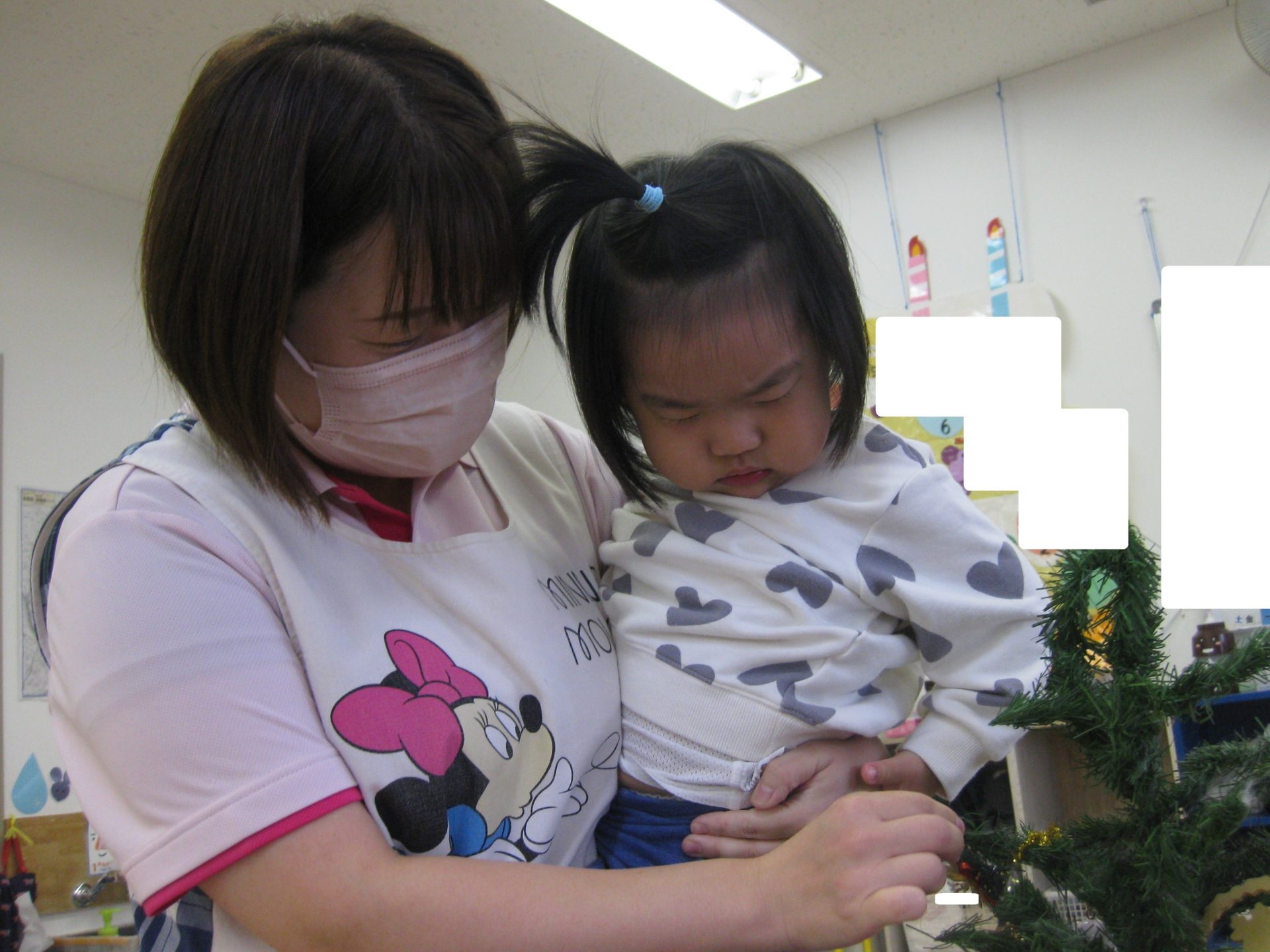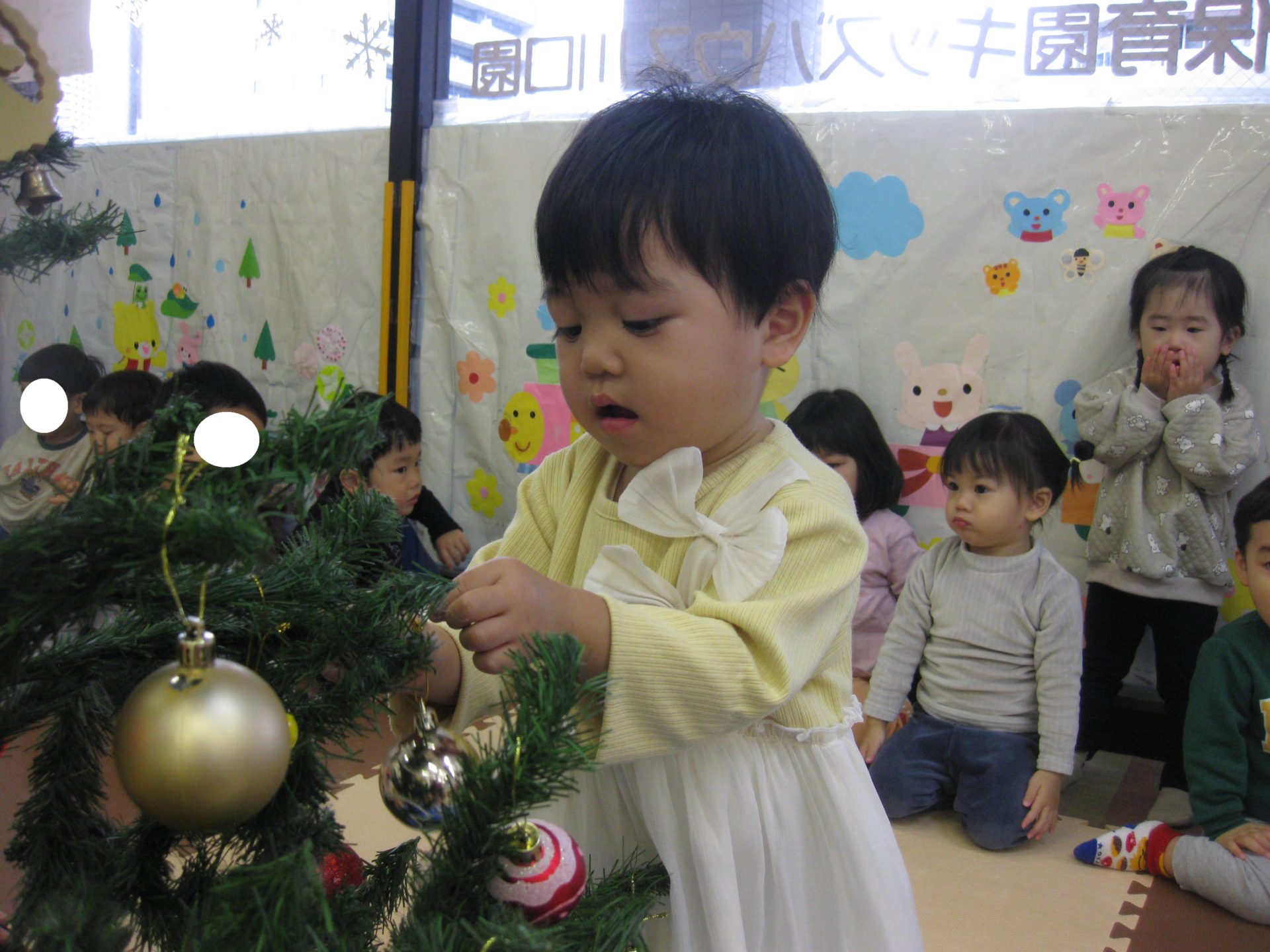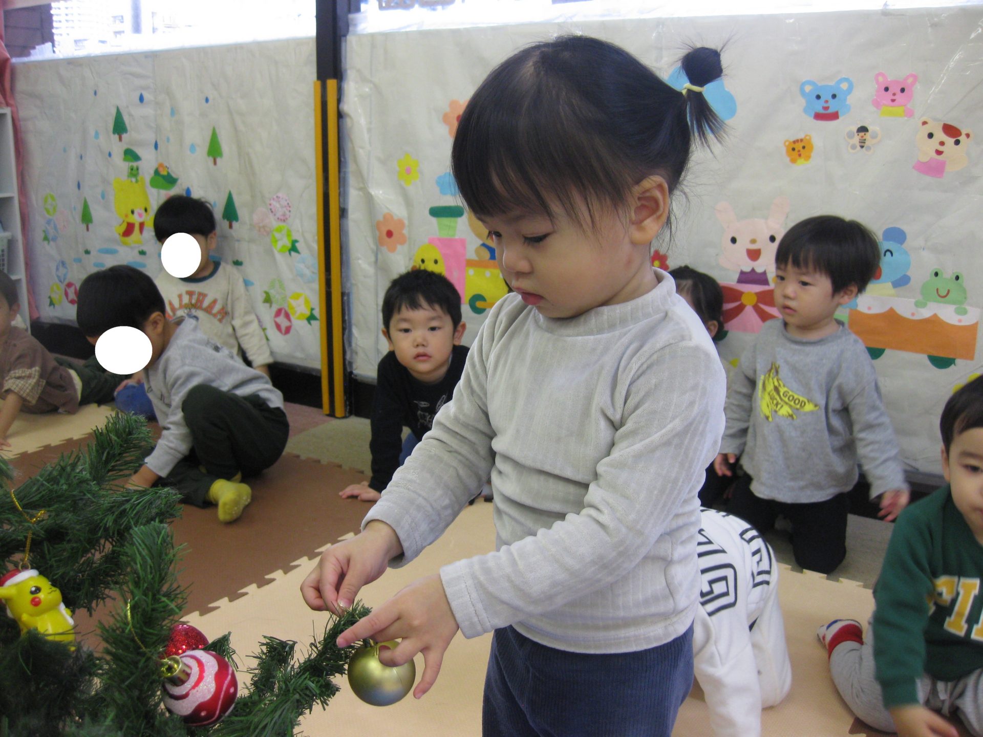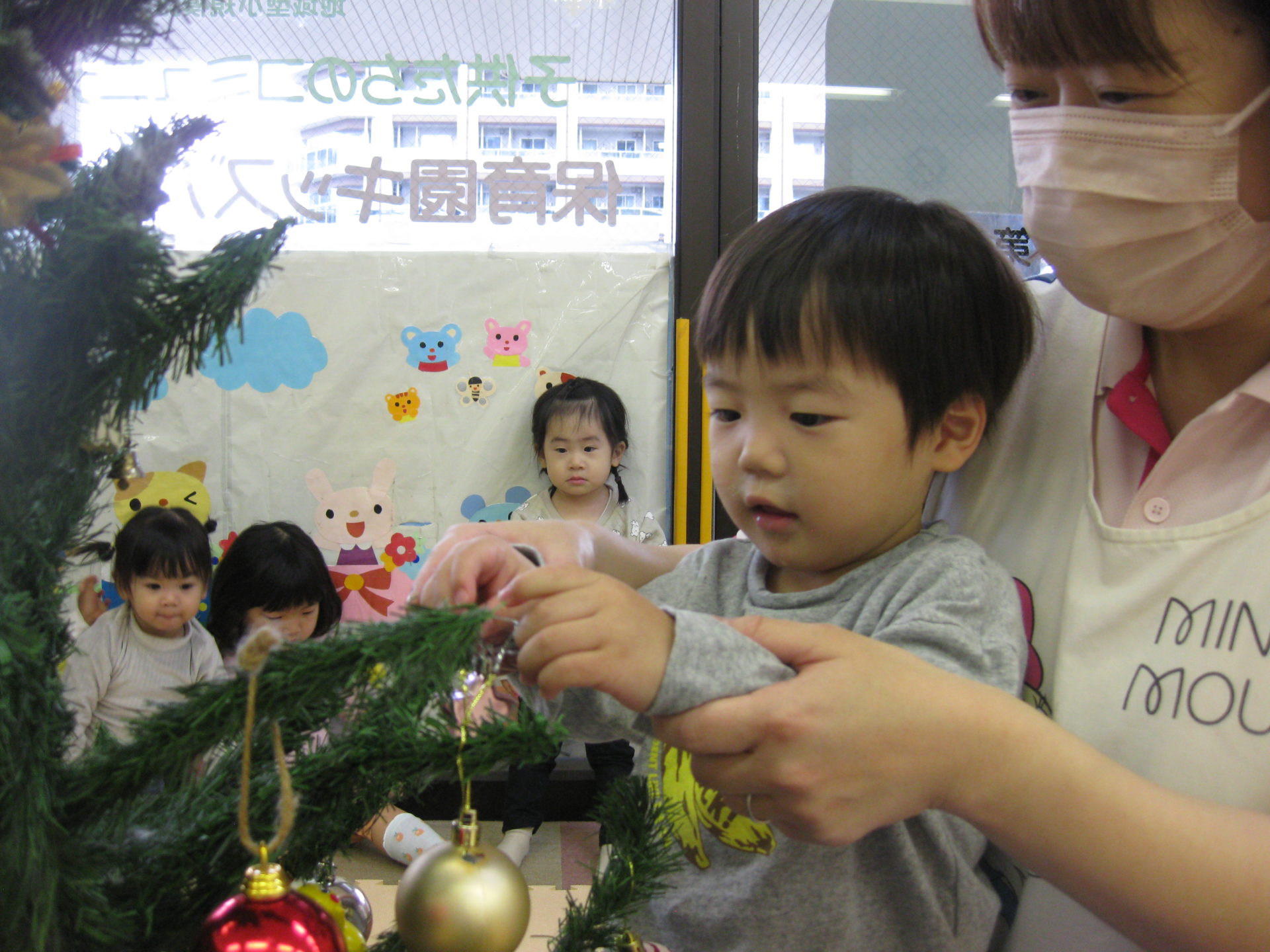 みんなで協力して飾付けたクリスマスツリー、保育室の入口に飾っております🥰