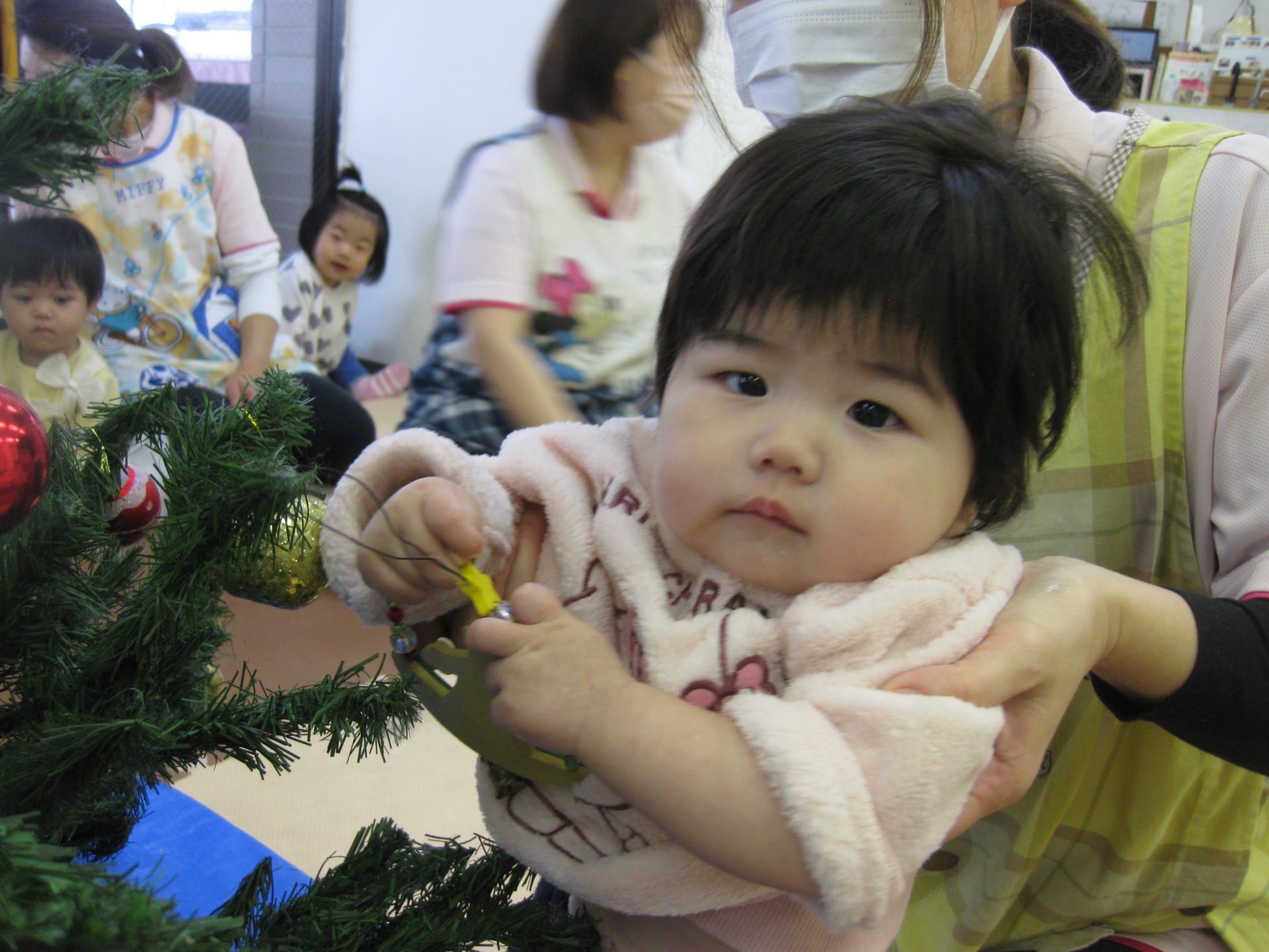 みんな飾りについた紐を持って上手につけていました🎵