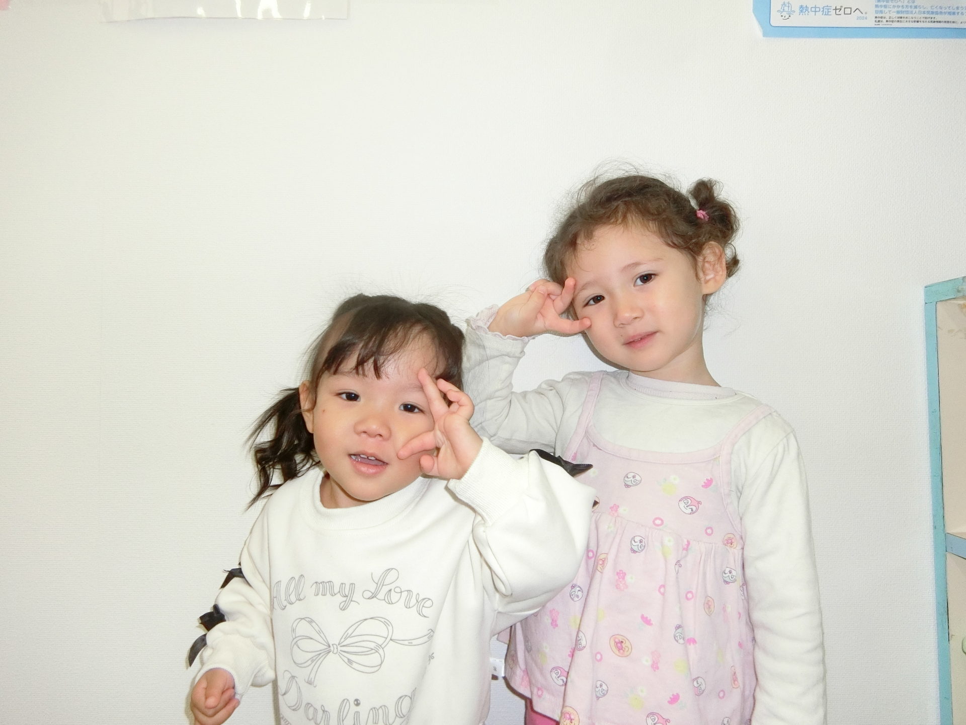 可愛く一緒のポーズで♡