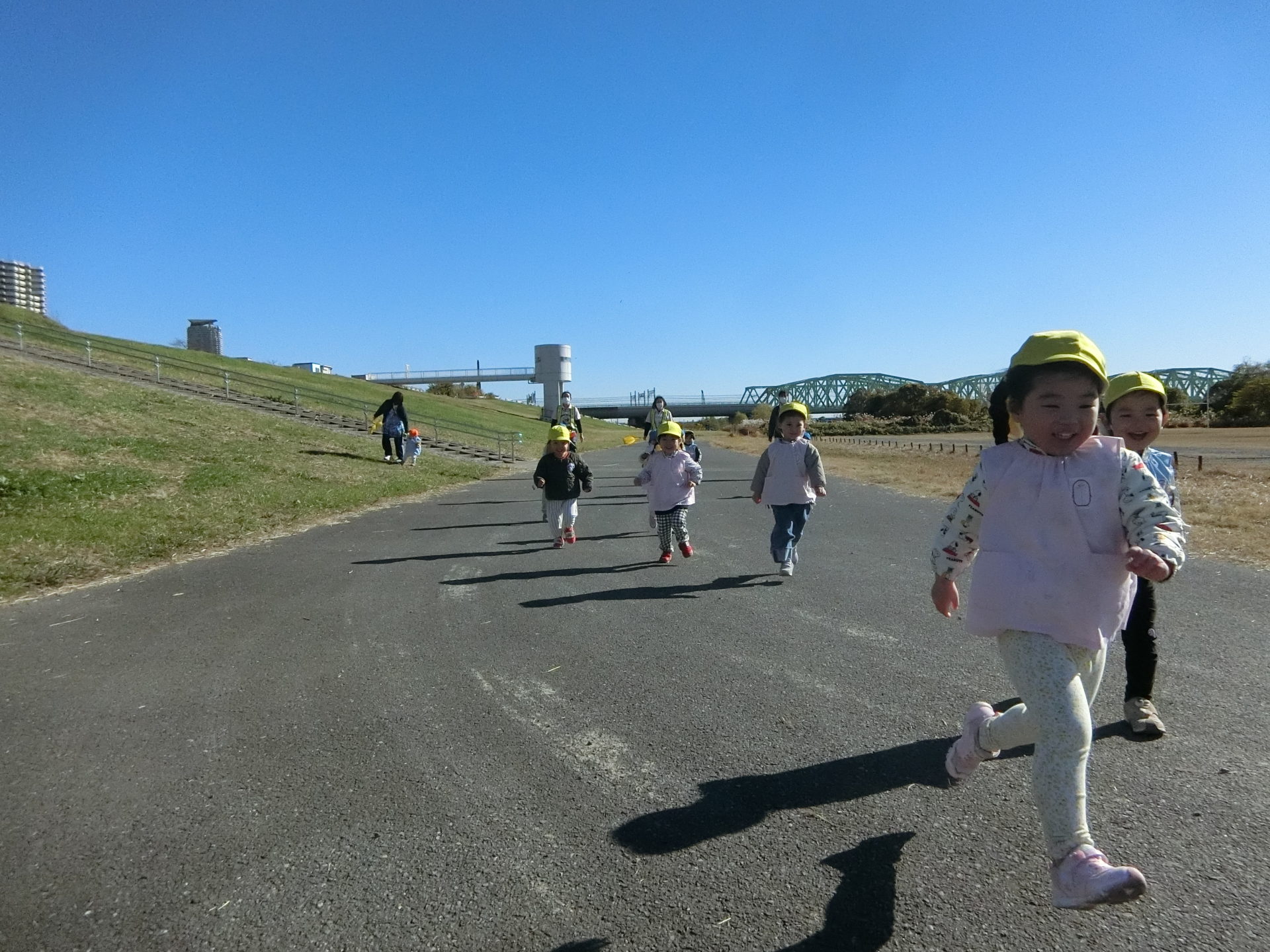 ゴール位置の先生がこっそり後ろに下がって、走る距離を伸ばしてもみんな疲れる様子もなく、完走してくれました!✨