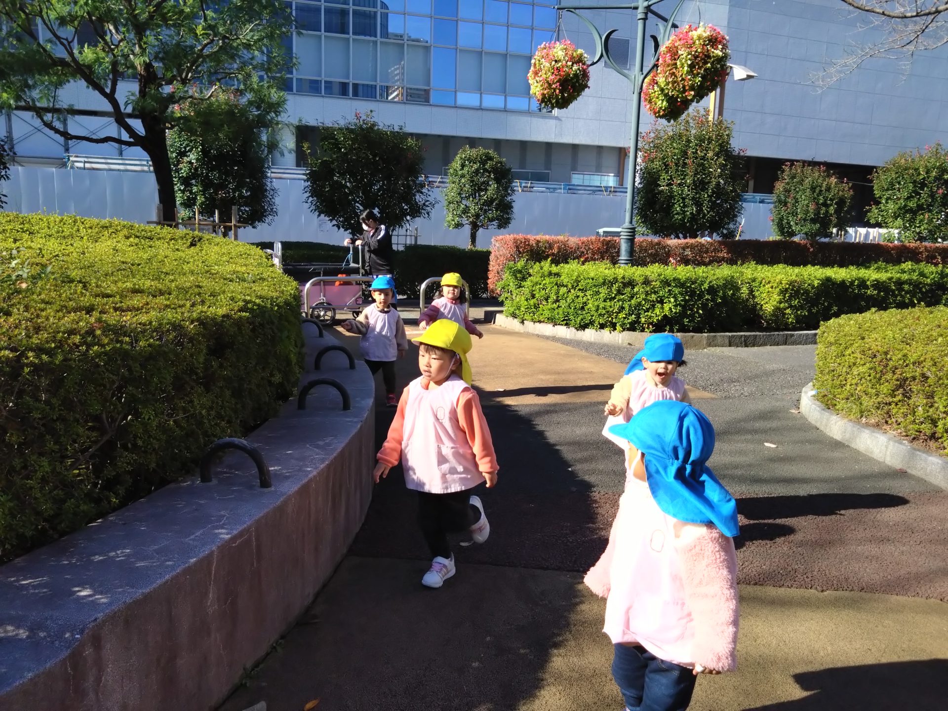 時折風が吹き、木の葉が落ちてくると「すごーい、葉っぱがおちてきた~」「きれーい」と手を伸ばし、目を輝かせながら見ていましたよ🤩