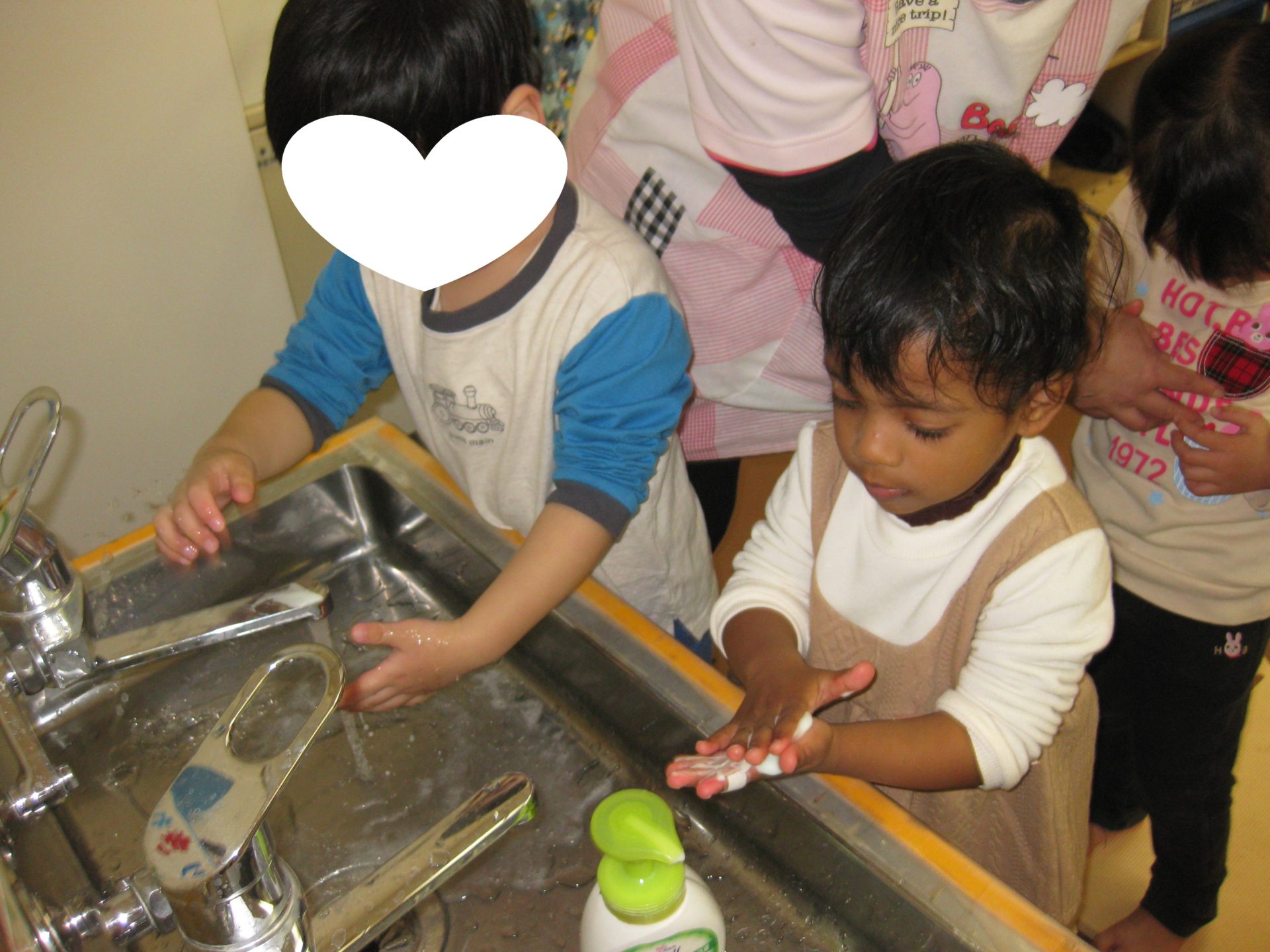 泡をよく立てて、おててゴシゴシ! ばい菌をきれいにバイバイしましょう✨