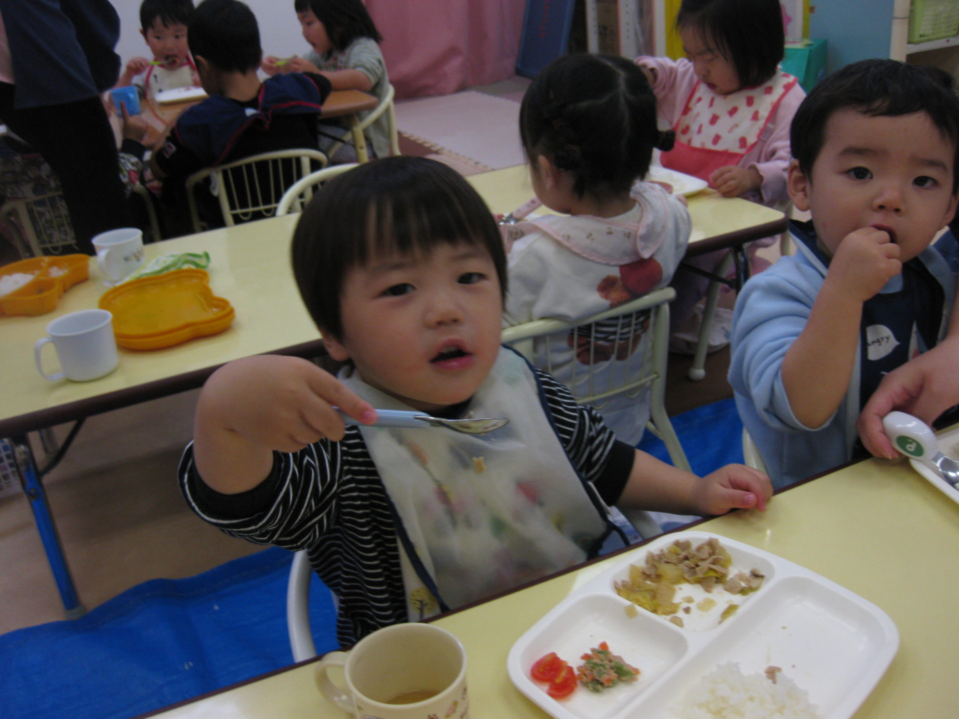 うさぎ組さん・こあら組のお友達も、いただきまーす🥄!