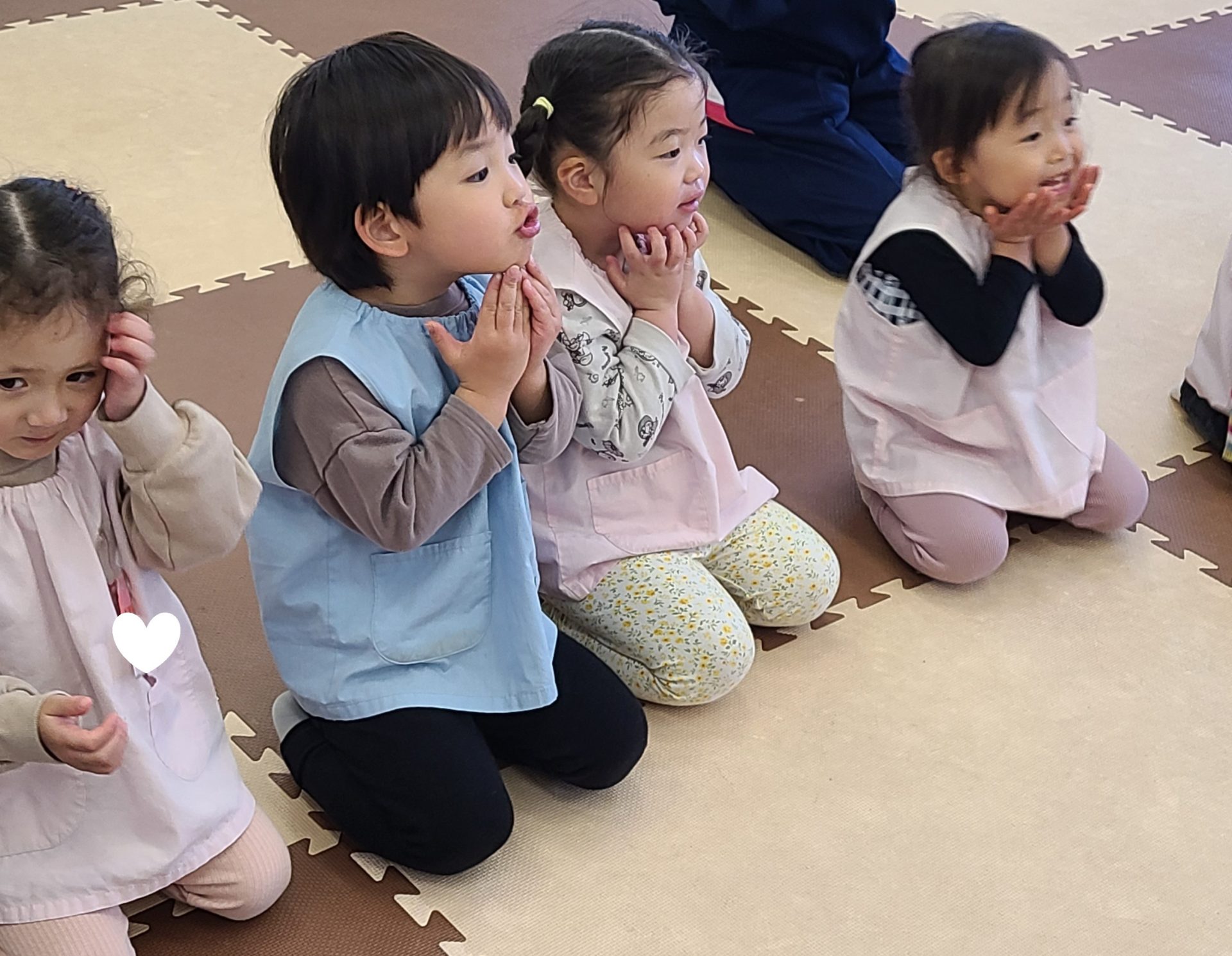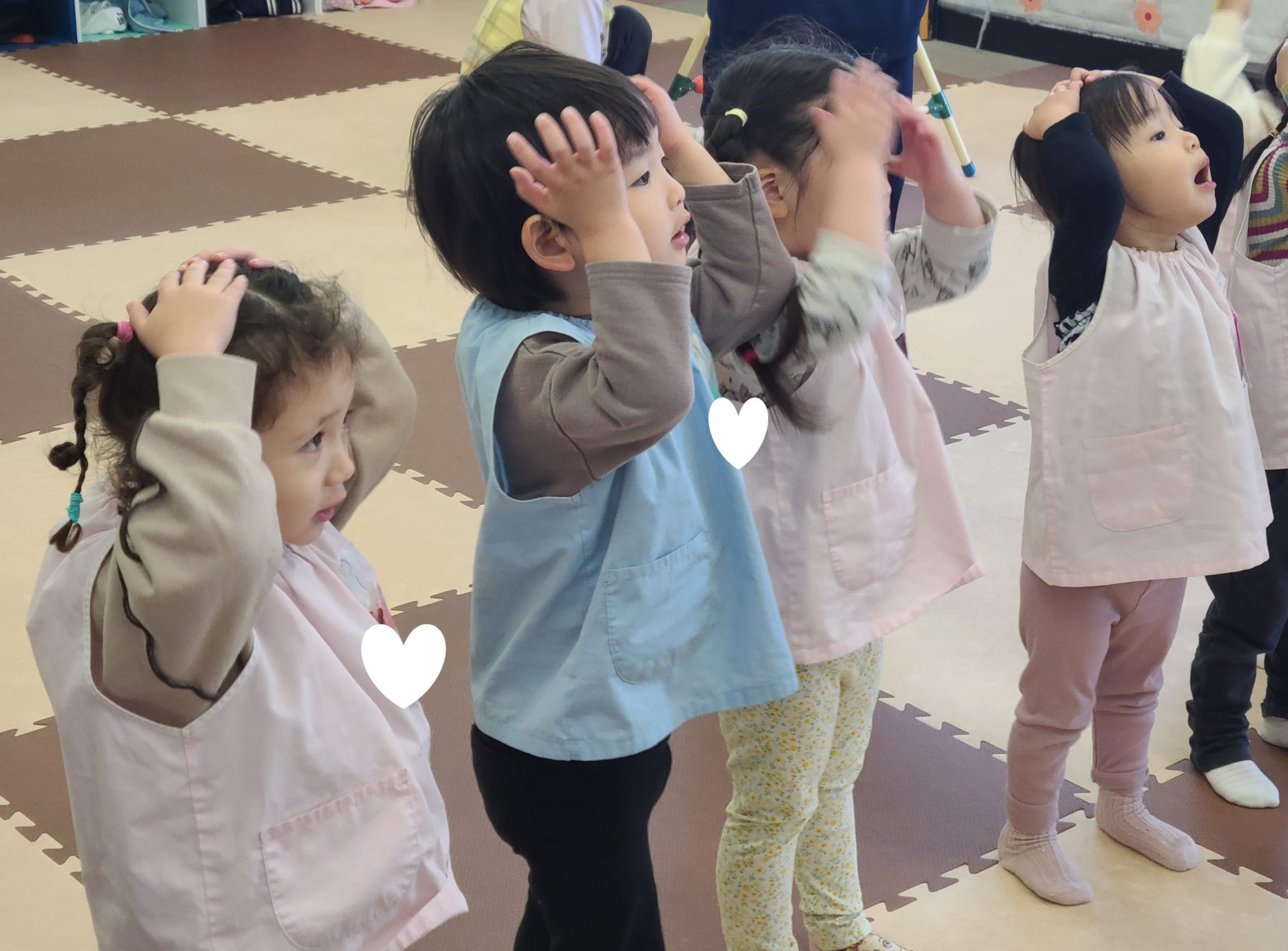 うさぎ組さんも手を繋いで一生懸命に歌っています♬