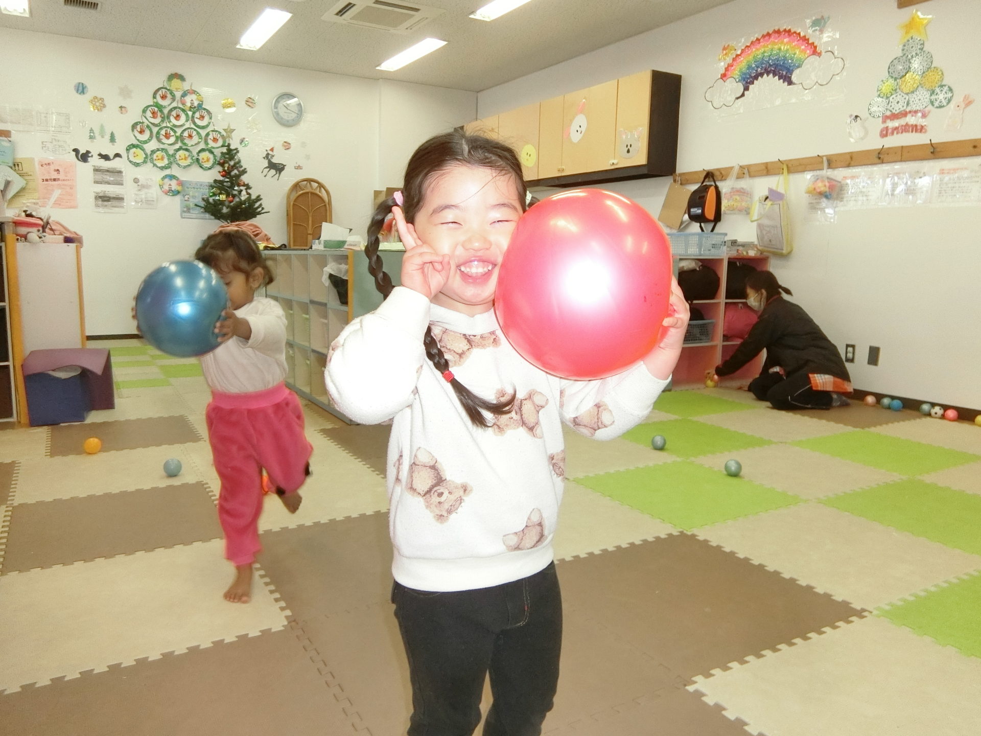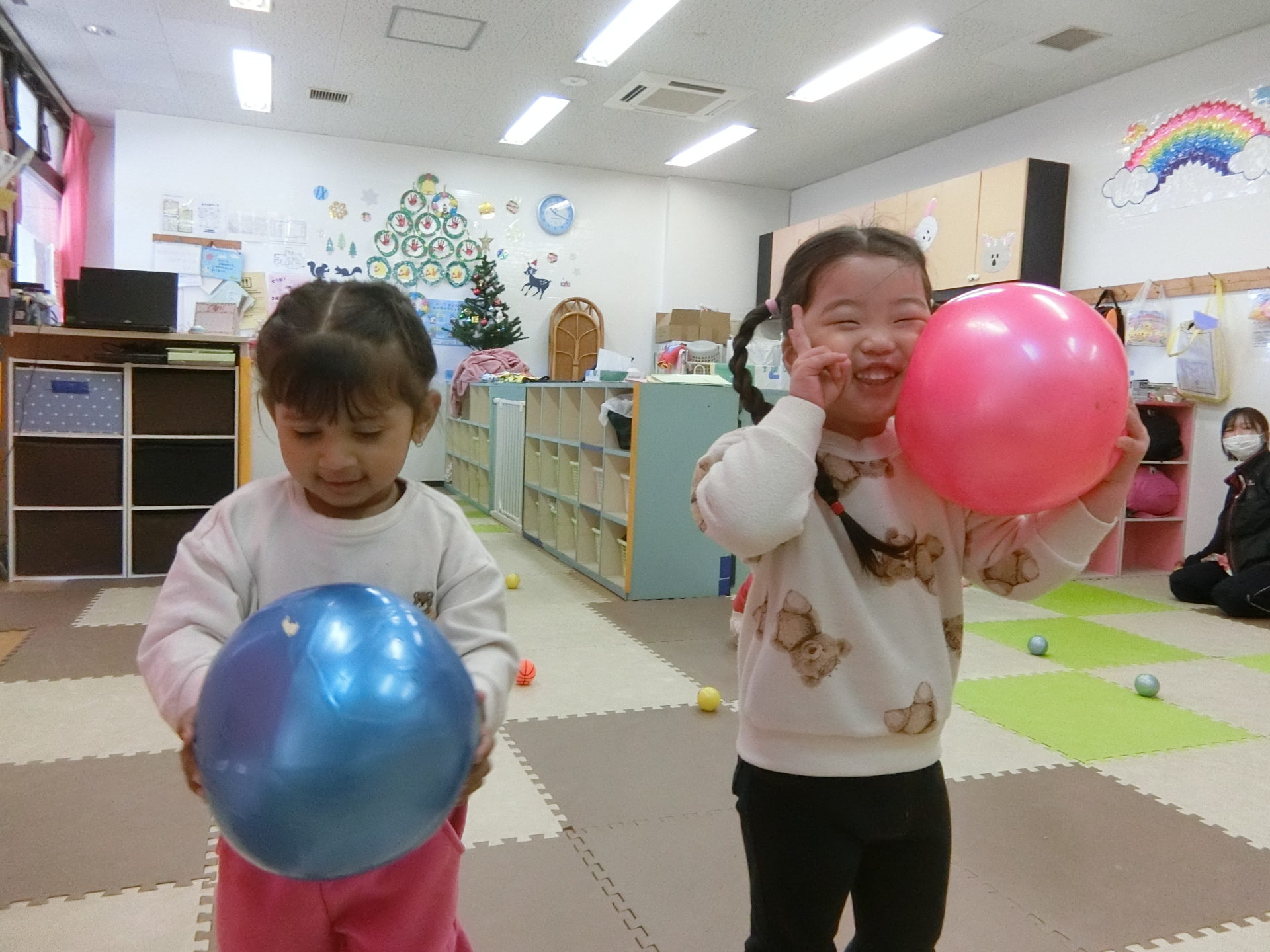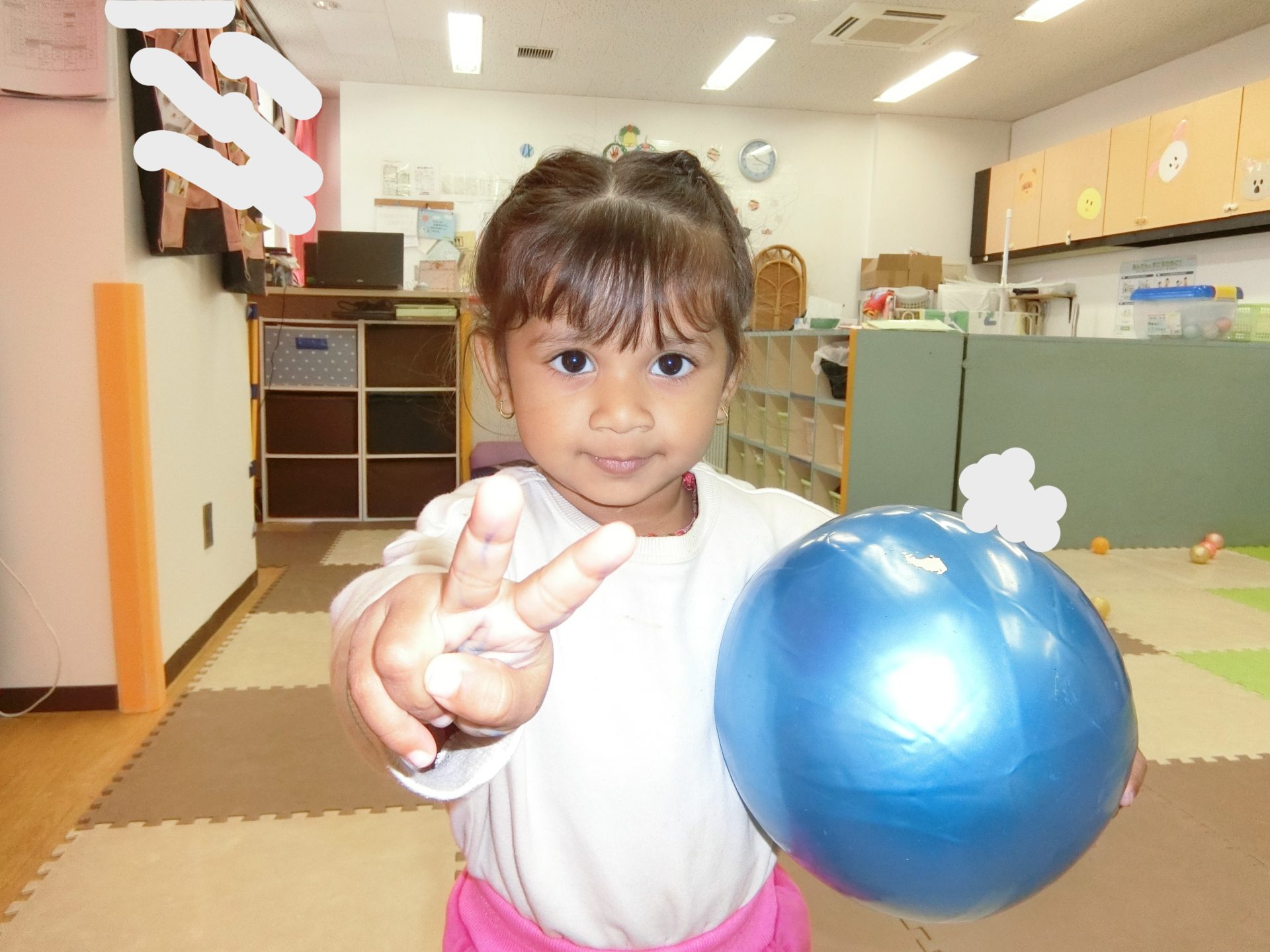 今日は「ボール遊びしたーい」とリクエストがあったので、大きなボールと小さなボールを出して遊びました🔴