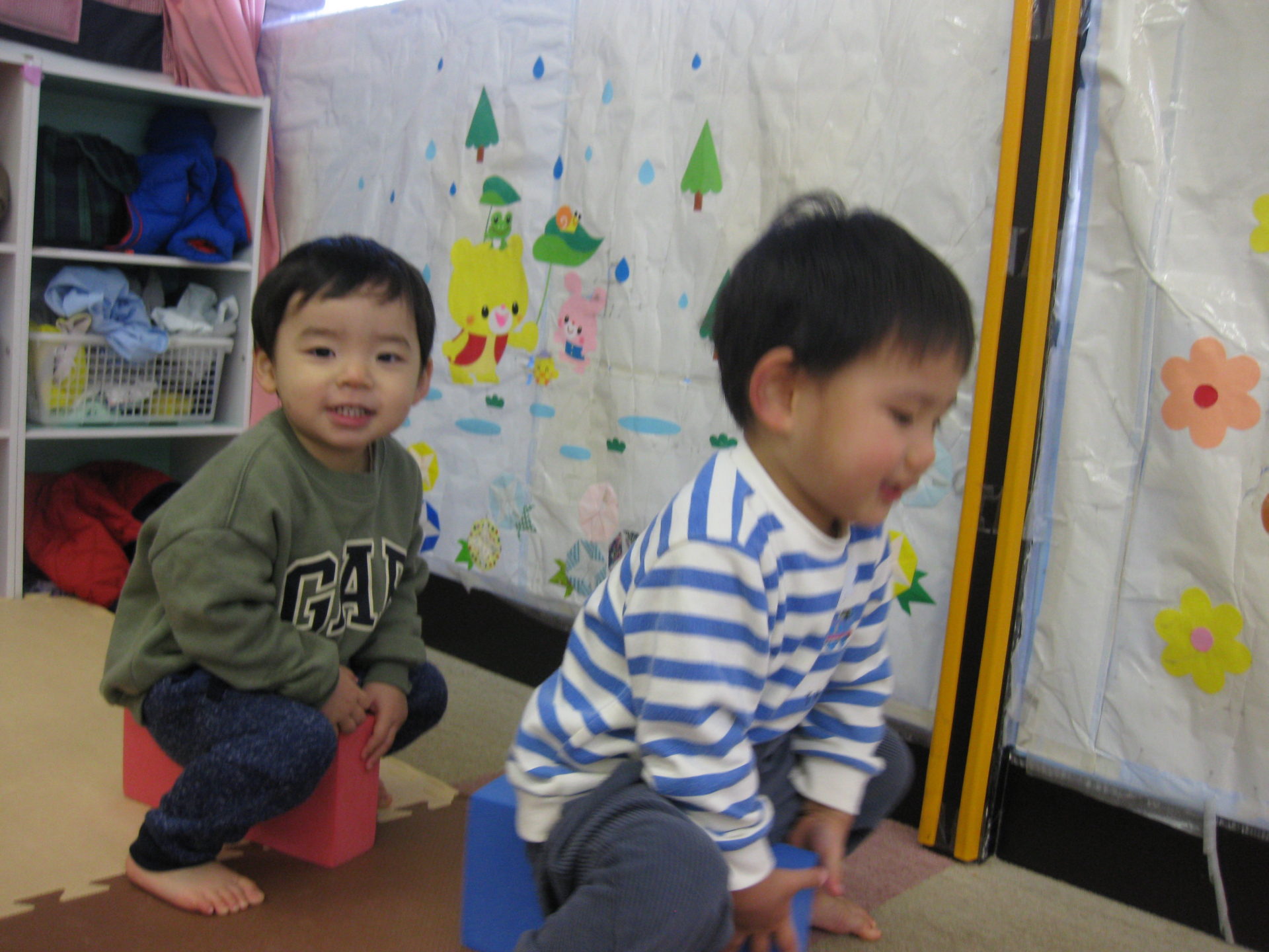 お部屋ではソフトブロックやベビージムなど赤ちゃんのおもちゃを借りて遊びましたよ🥰