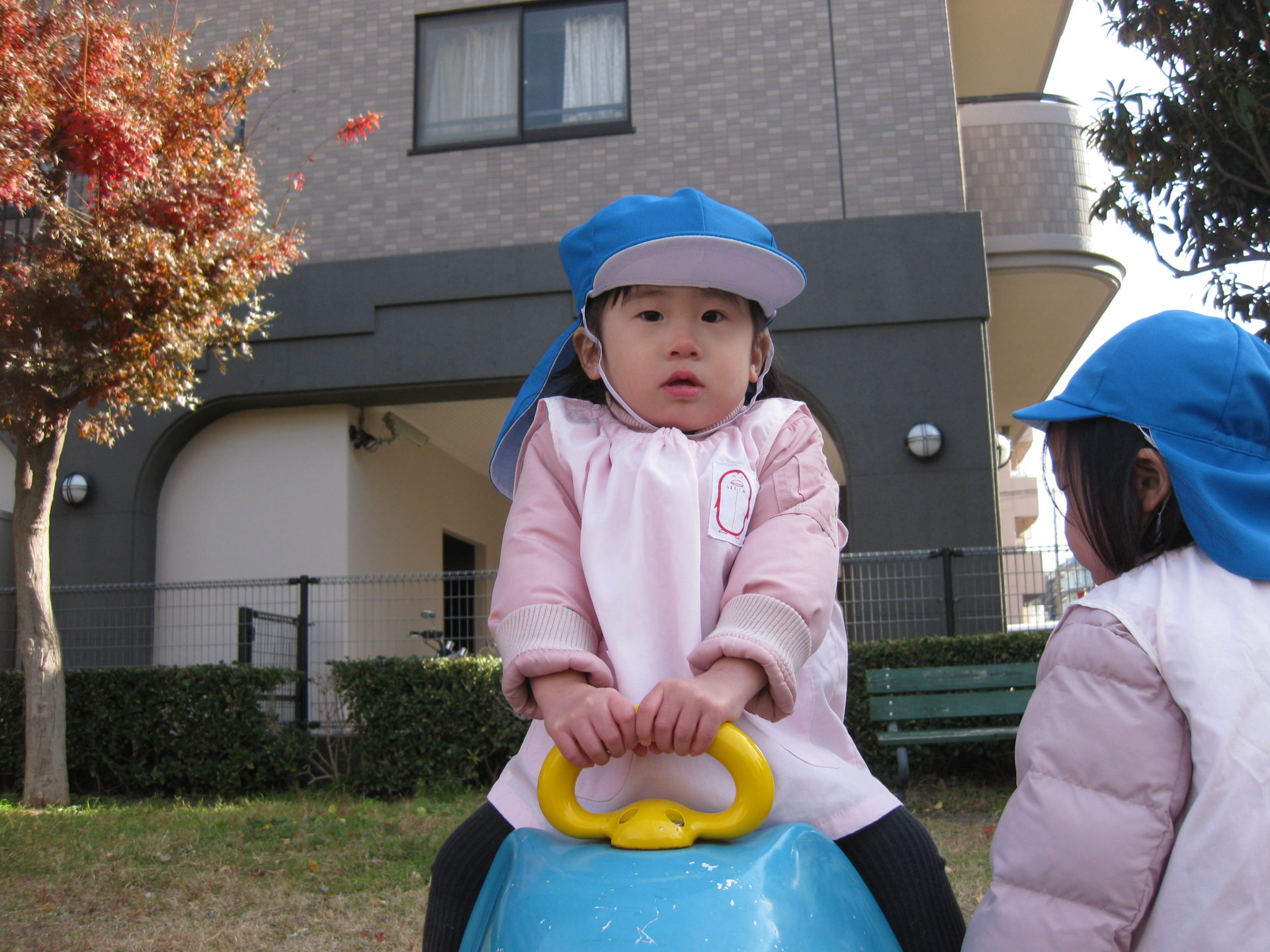 スプリング遊具で遊ぶこあら組のお友達は『いーち!にーい!』と回数を数えながら楽しんでいました🛵