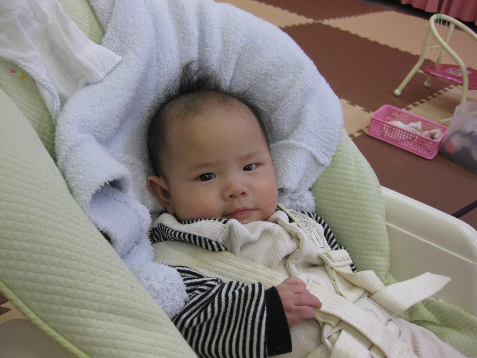 先生に支えてもらい、こあら組のお友達が優しくゆらゆらと揺らしてくれました🤭