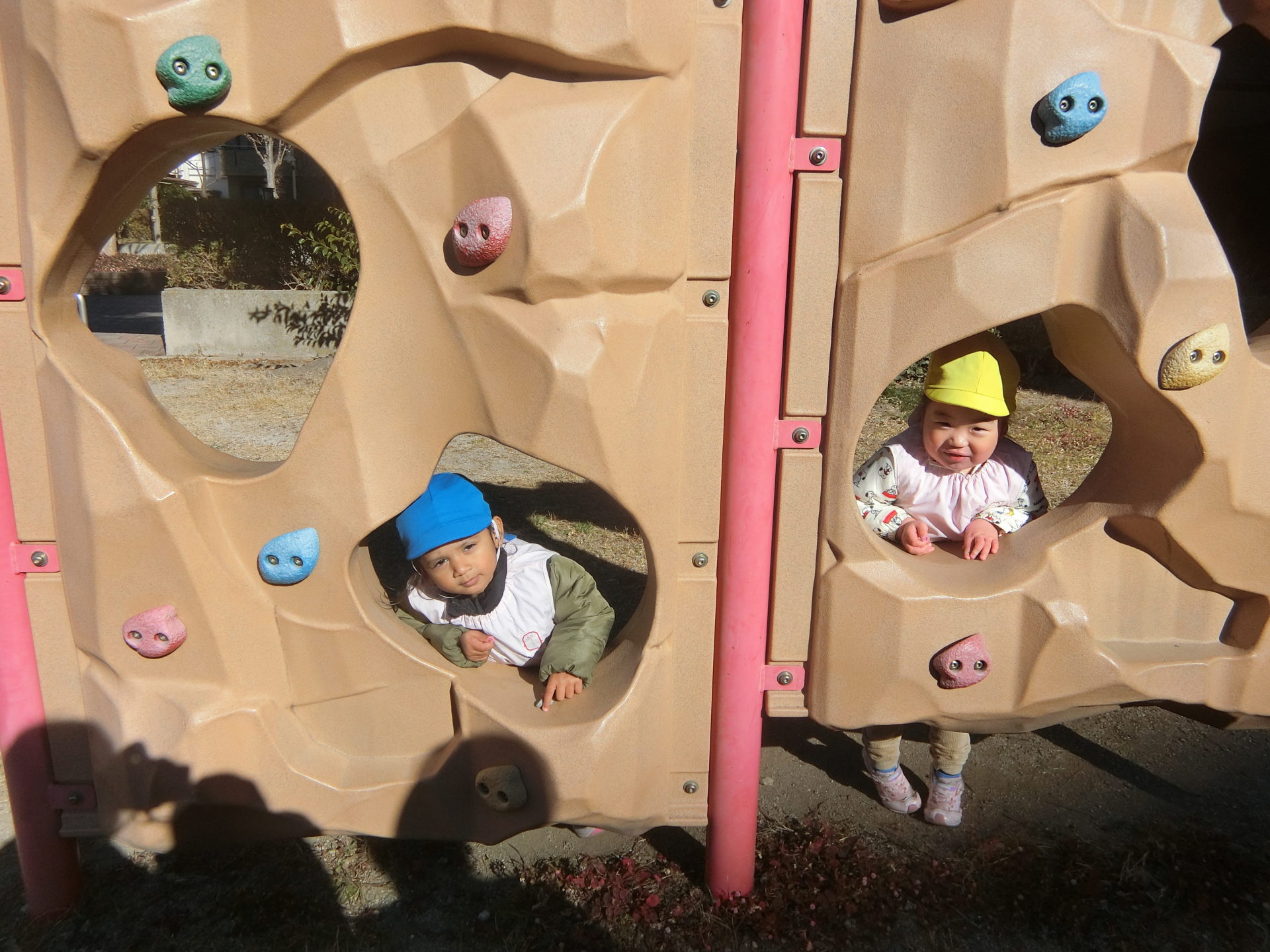 クライミングの遊具ではお店屋さんごっこをしたり、スプリング遊具や滑り台もしましたよ。