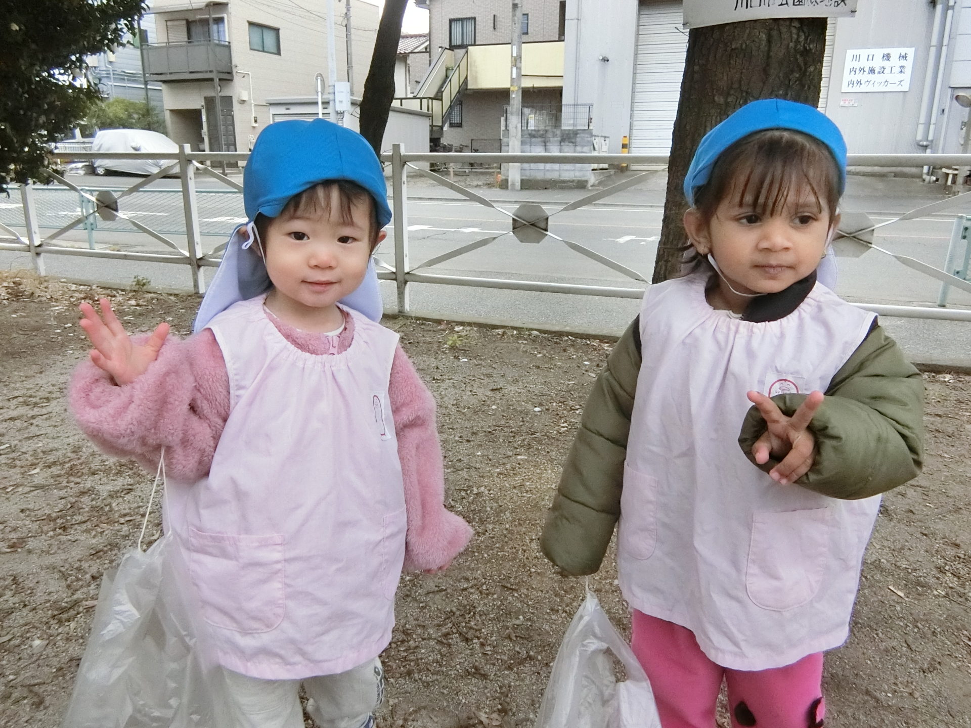 うさぎ組さんとひよこ組さんはお散歩に出かけ、