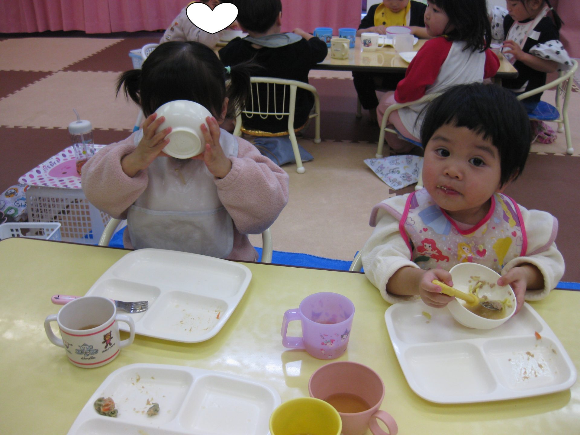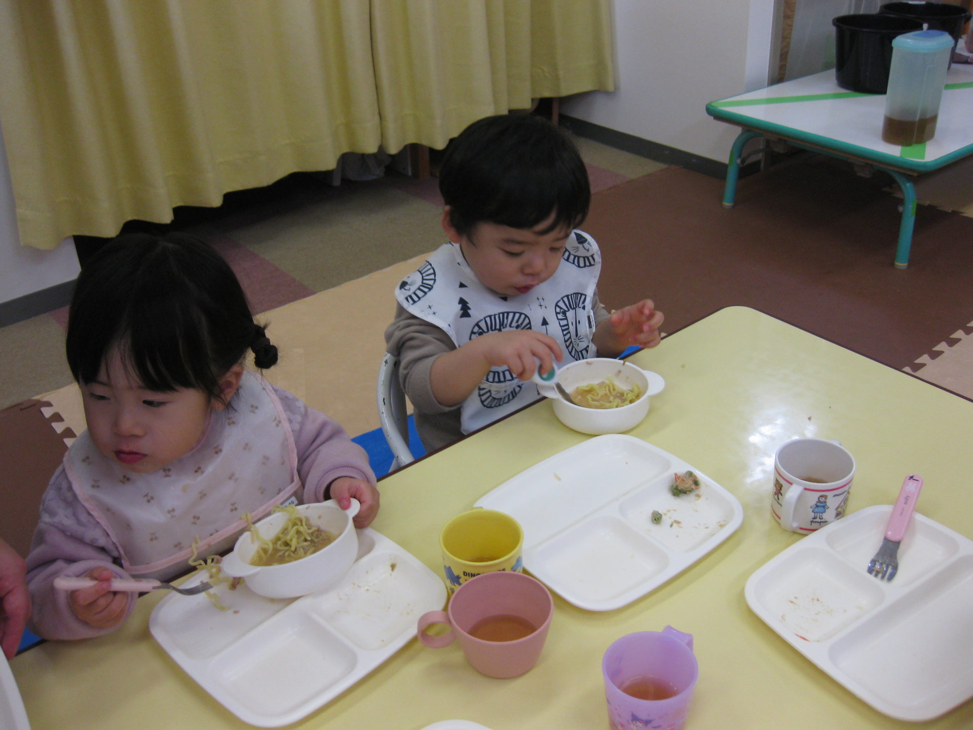 他の皆はお待ちかねのお給食😆大好きな麺のメニューだったのであっという間にお皿がピカピカになりましたよ🤩