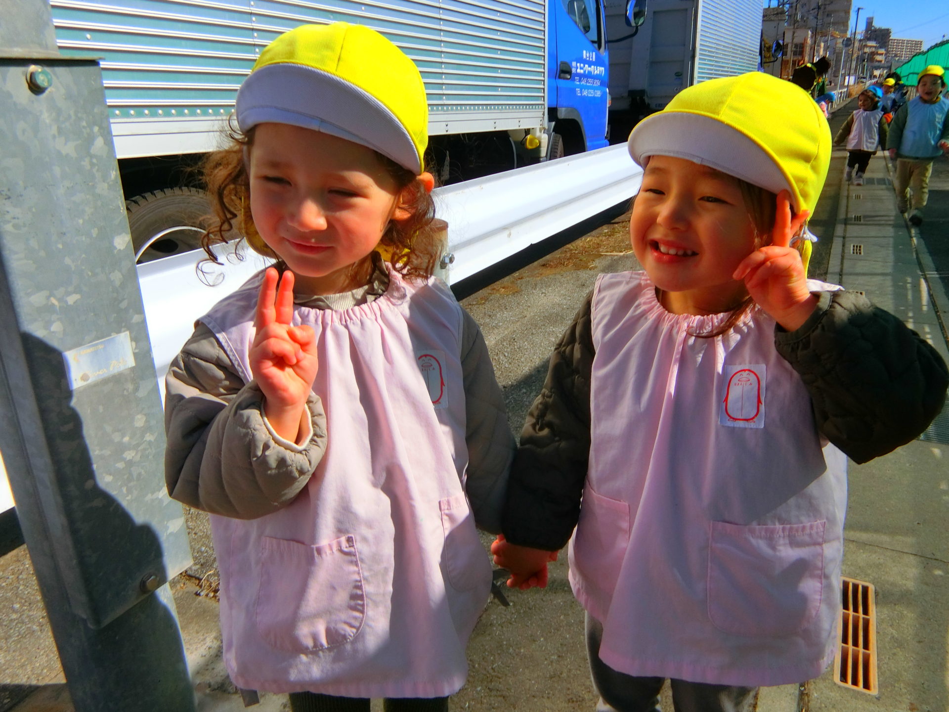 外の気温が低くて寒いですが、子ども達は寒さに負けず遊んでいます。