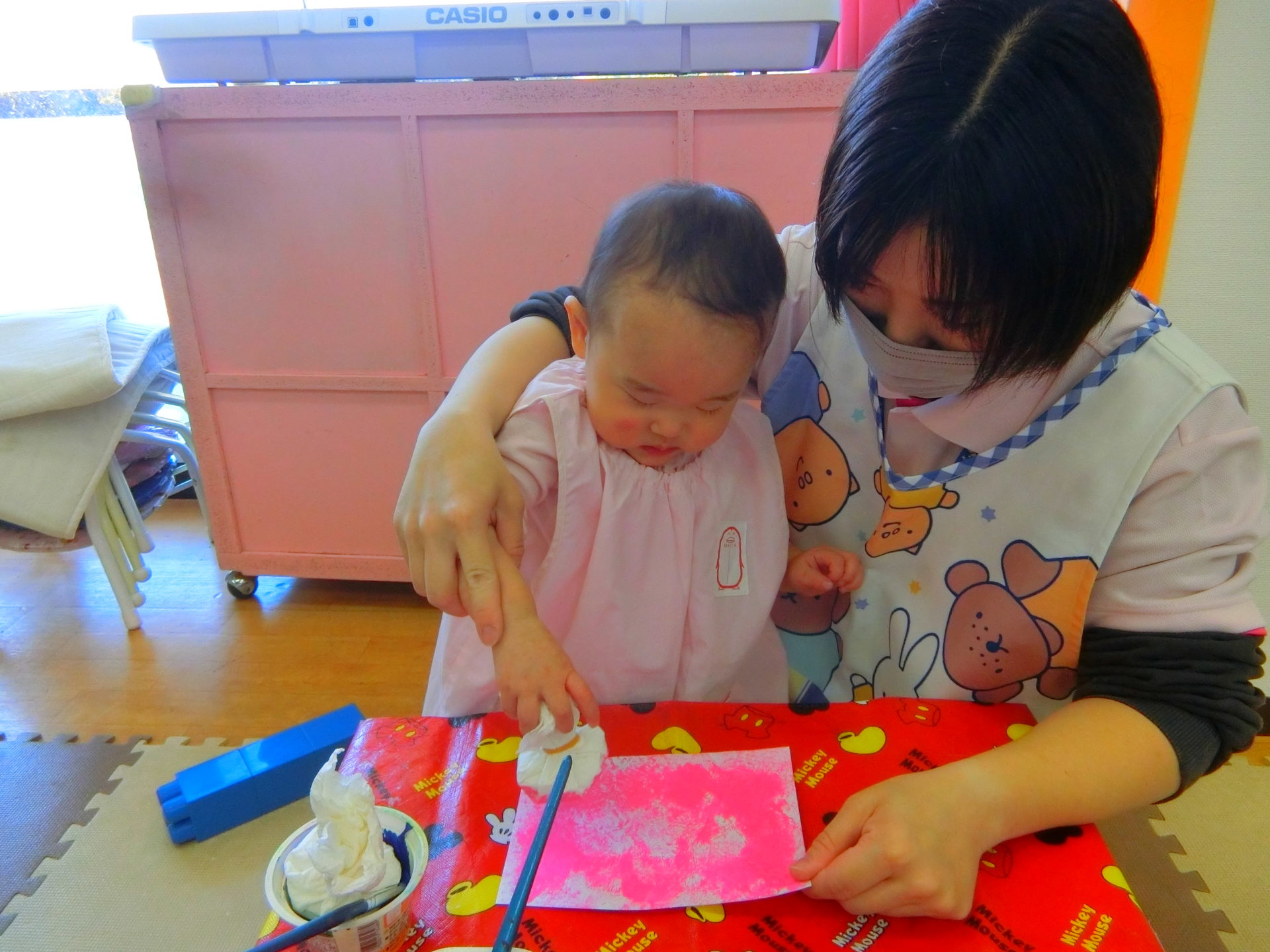 うさぎぐみさんは、お顔を作ってから絵の具を使ってお着物の模様を作りました。