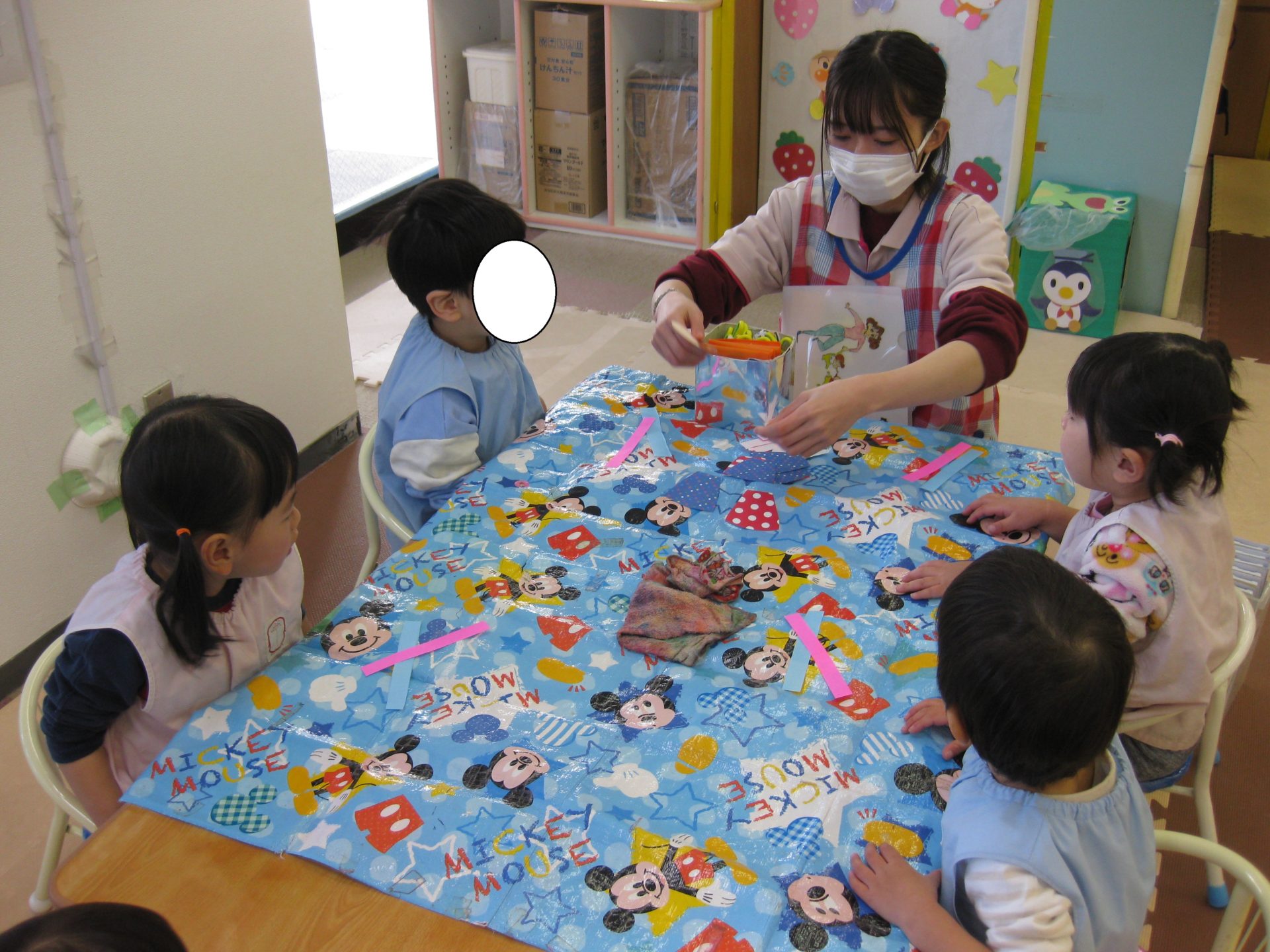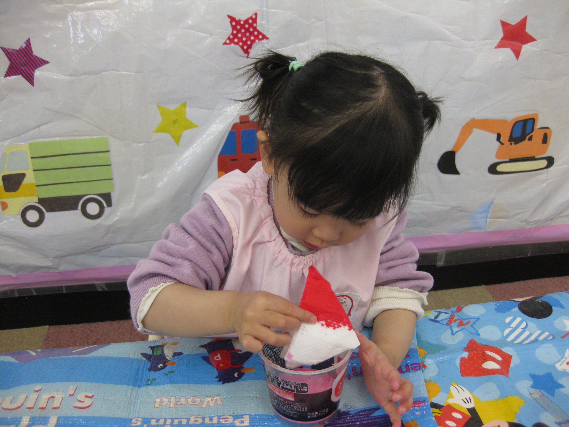ひよこ組のお友達はスタンプをポンポンしました。